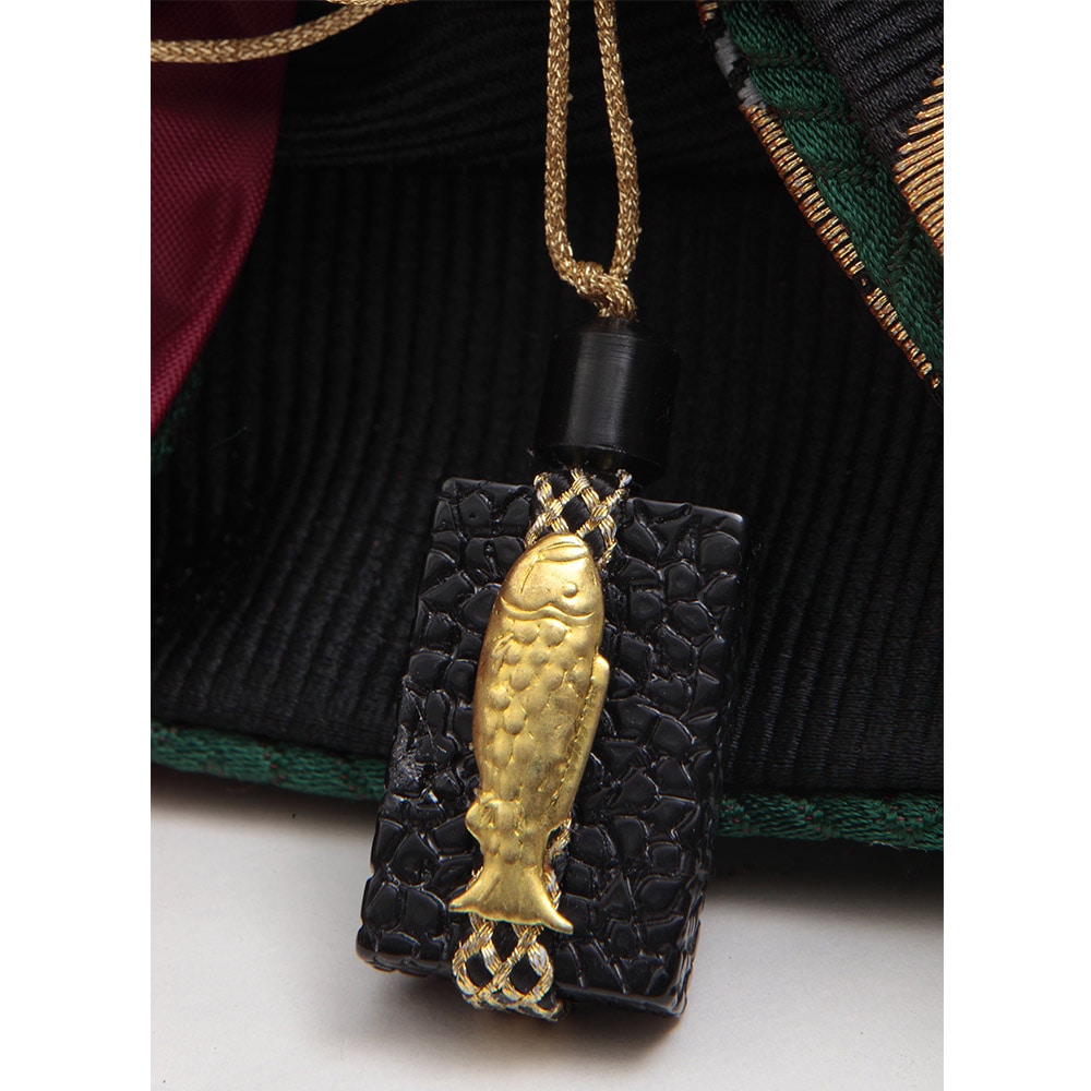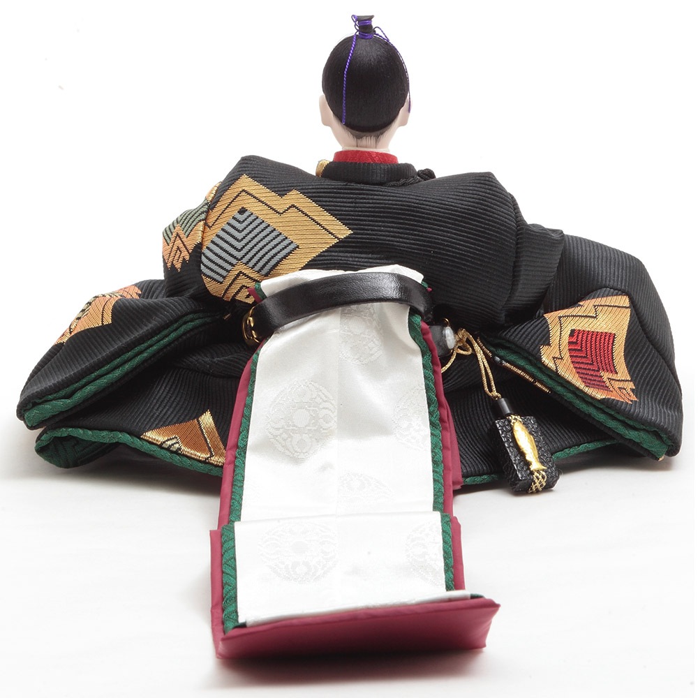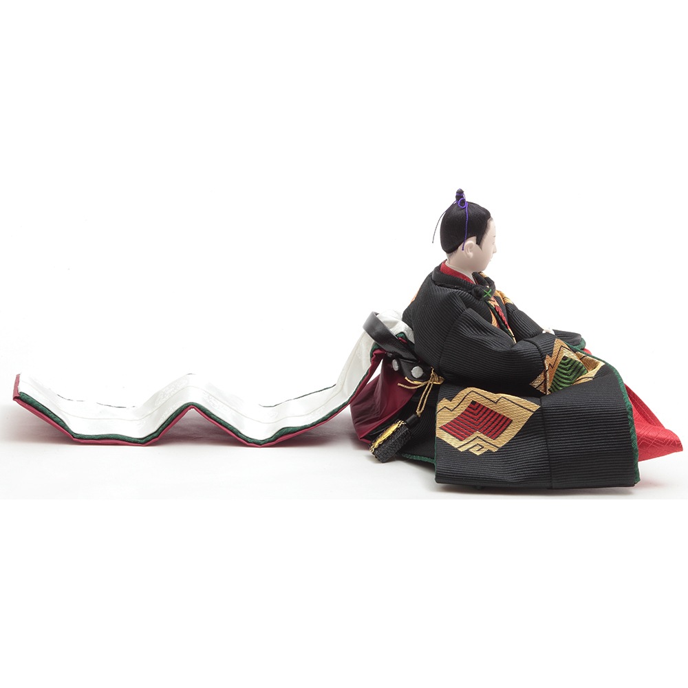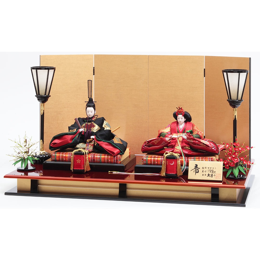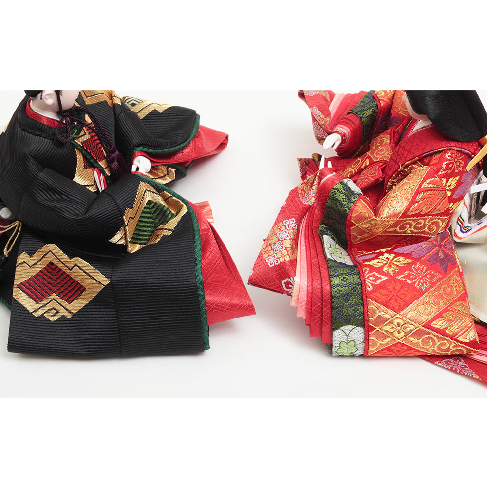 左右の手の高さを変え動きを表現した男雛と、煌びやかな美しい衣裳の女雛を合わせた、帝(みかど)をイメージした高級感のあるお飾りです。