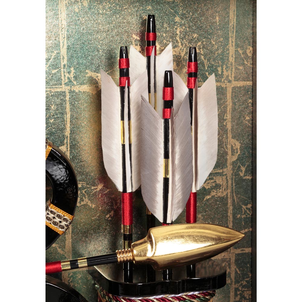 弓を射る躍動感のあるデザインが印象的で、緑箔の背景にボリューム感のある中造りが良く映えます。