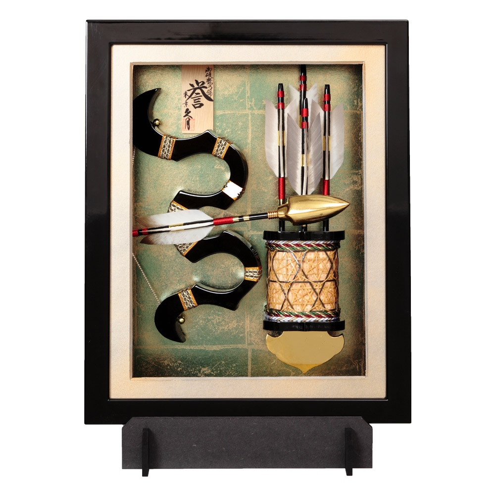 置型飾りとしてだけでなく、壁掛飾りとしても使用可能な人気のタイプの破魔弓飾りです。