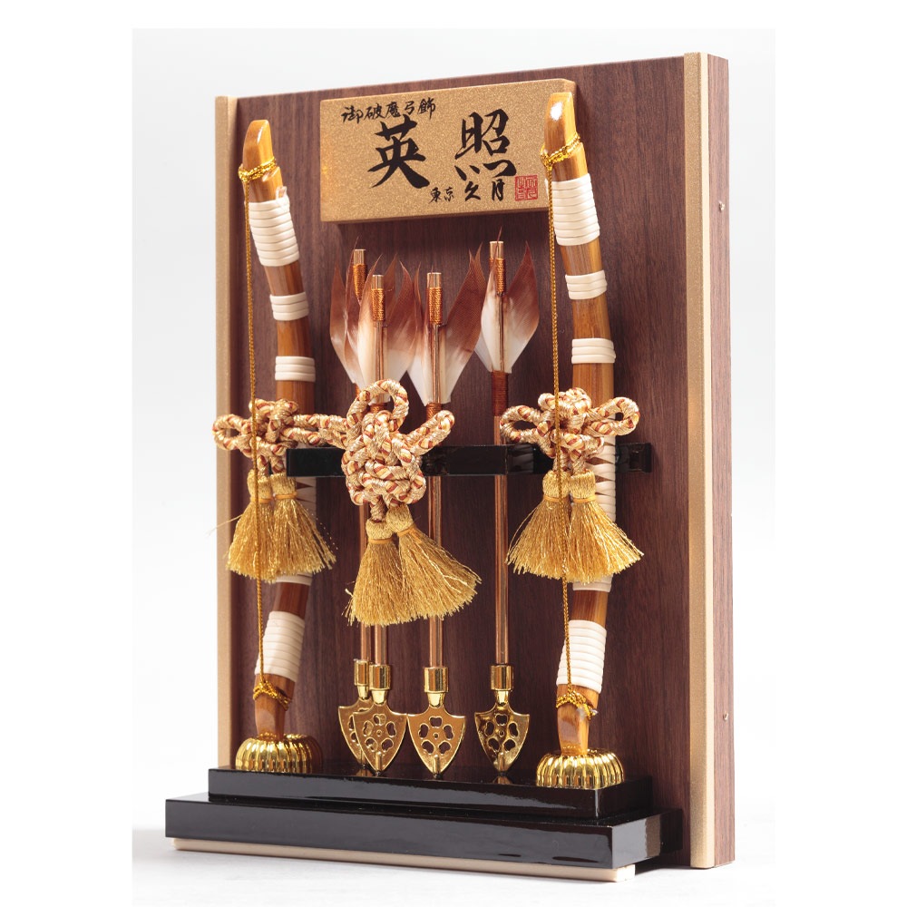 壁掛でも置型でも飾れるコンパクトサイズの破魔弓飾り。
