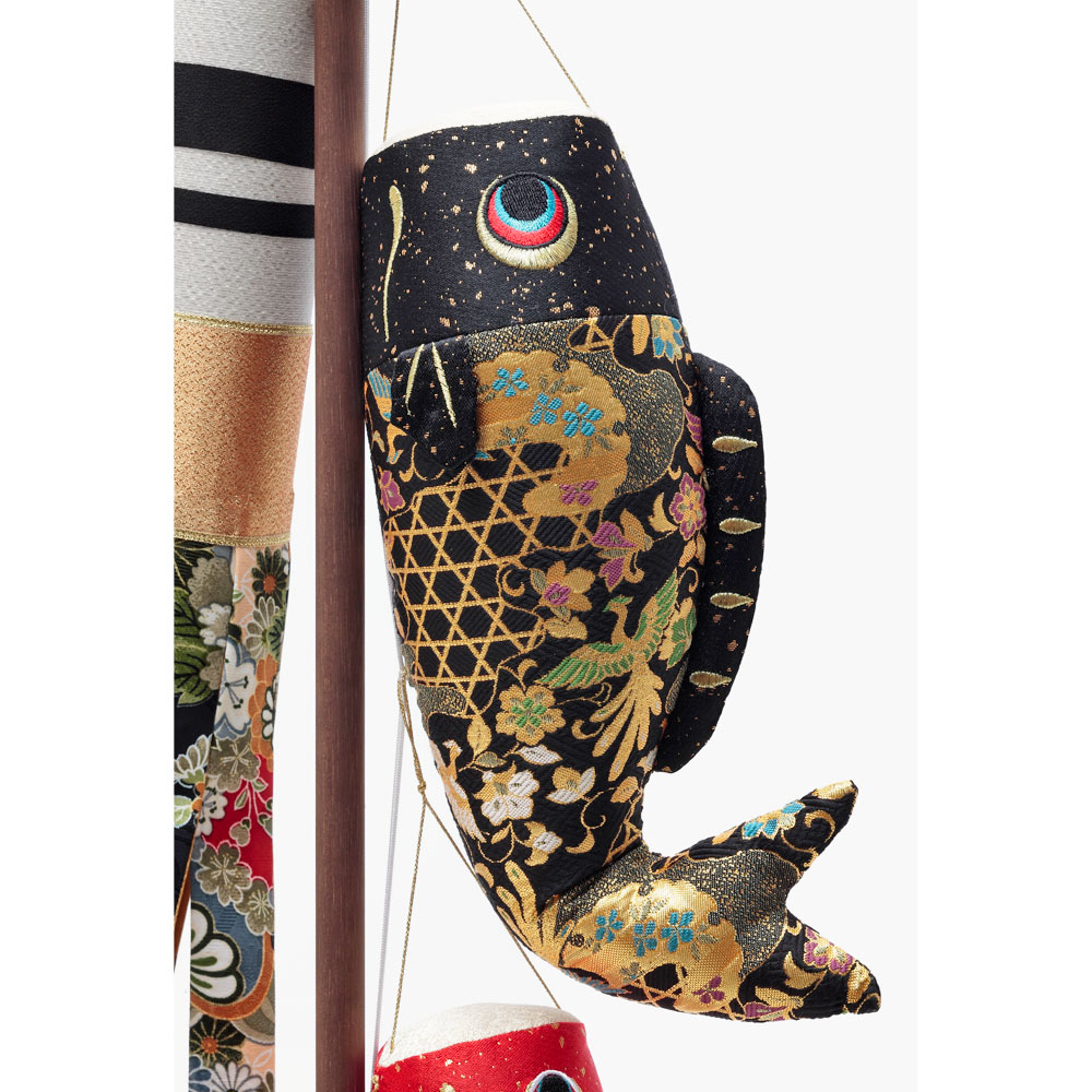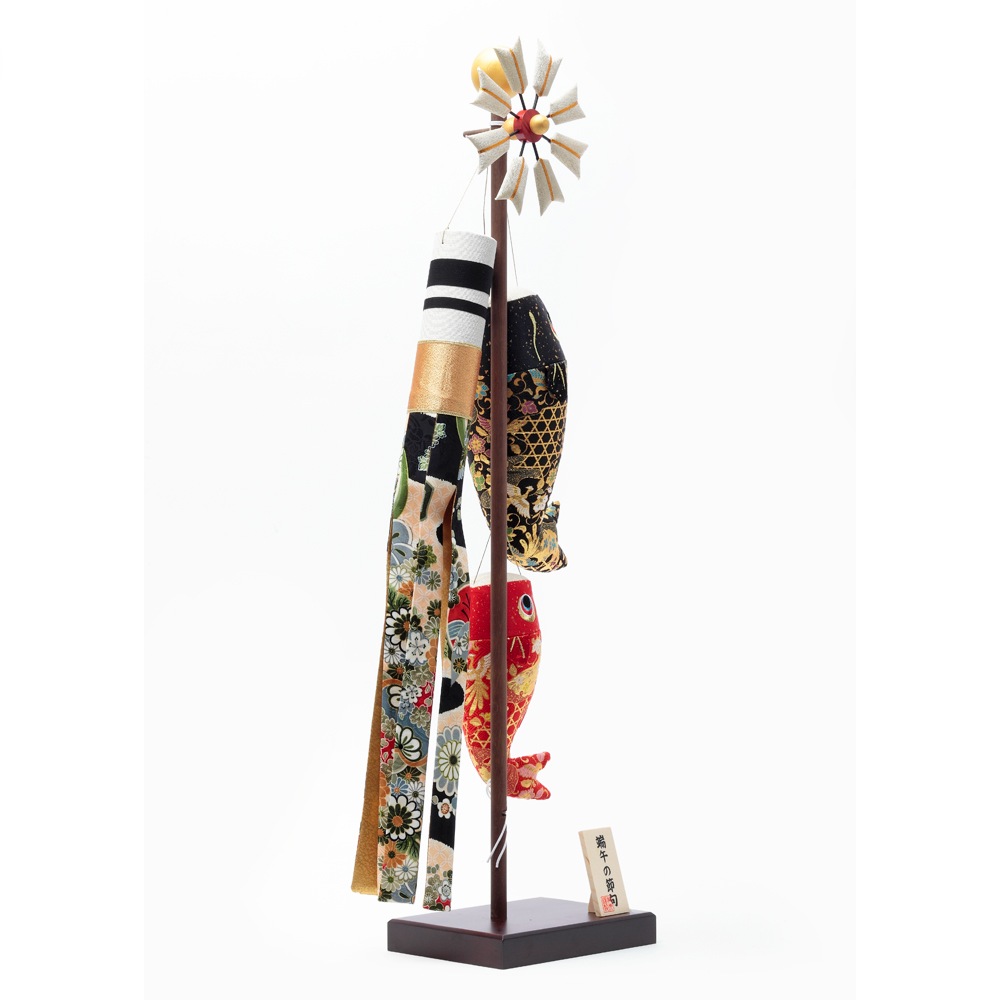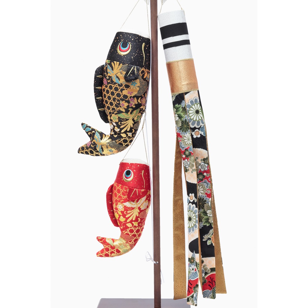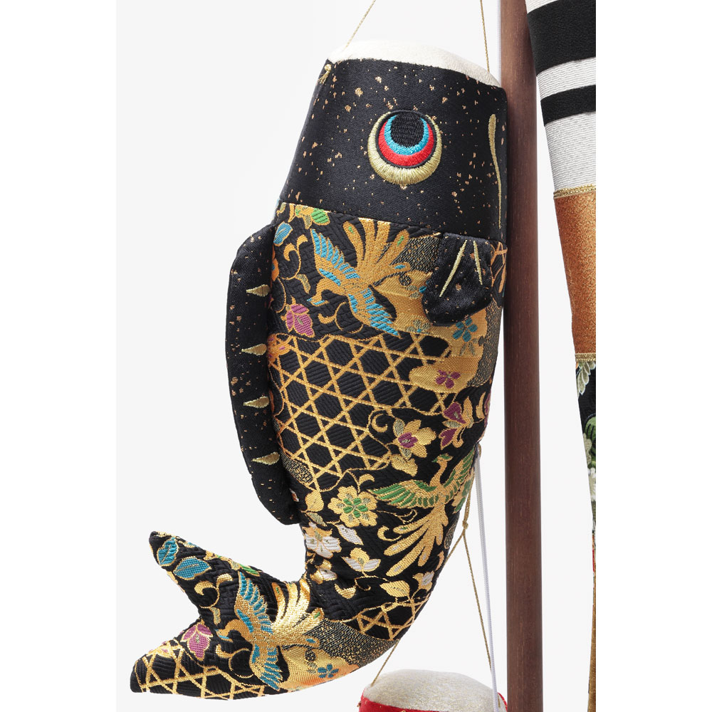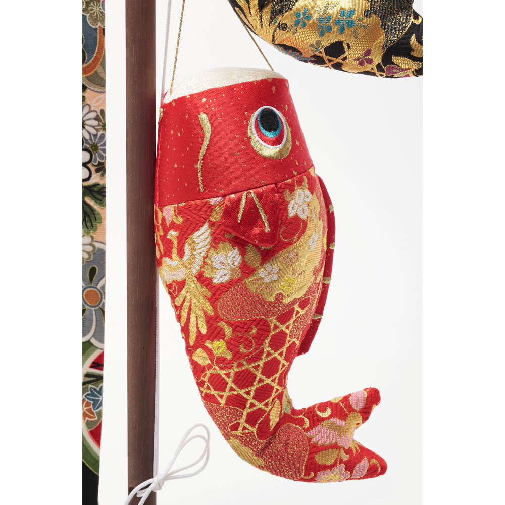 煌びやかな趣が魅力の金襴を使用して仕立てた室内用の鯉のぼりです。