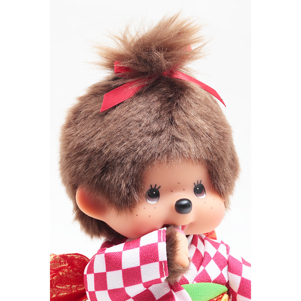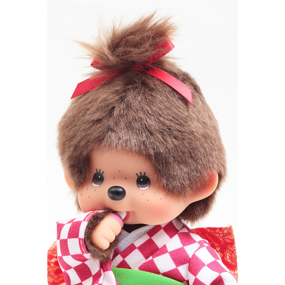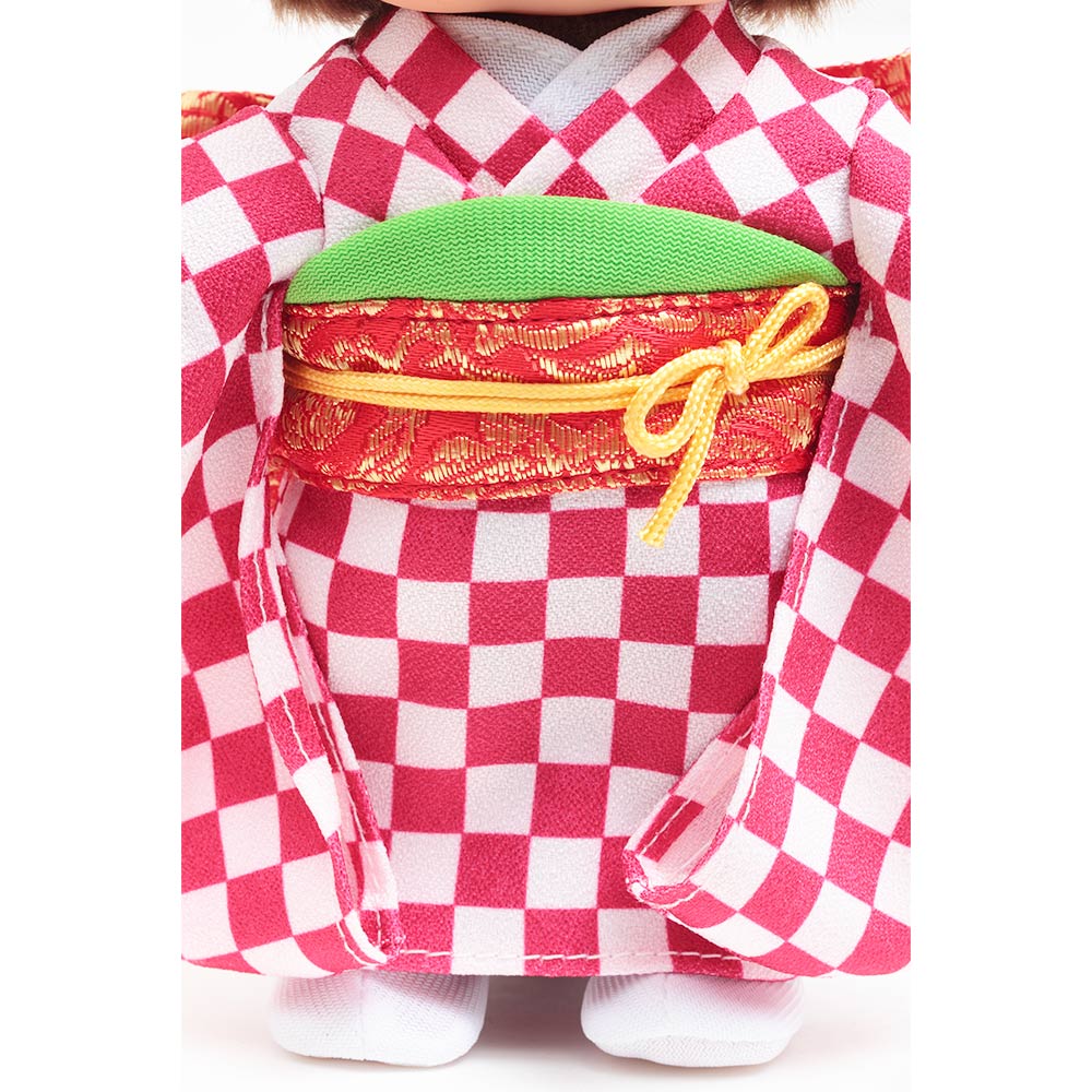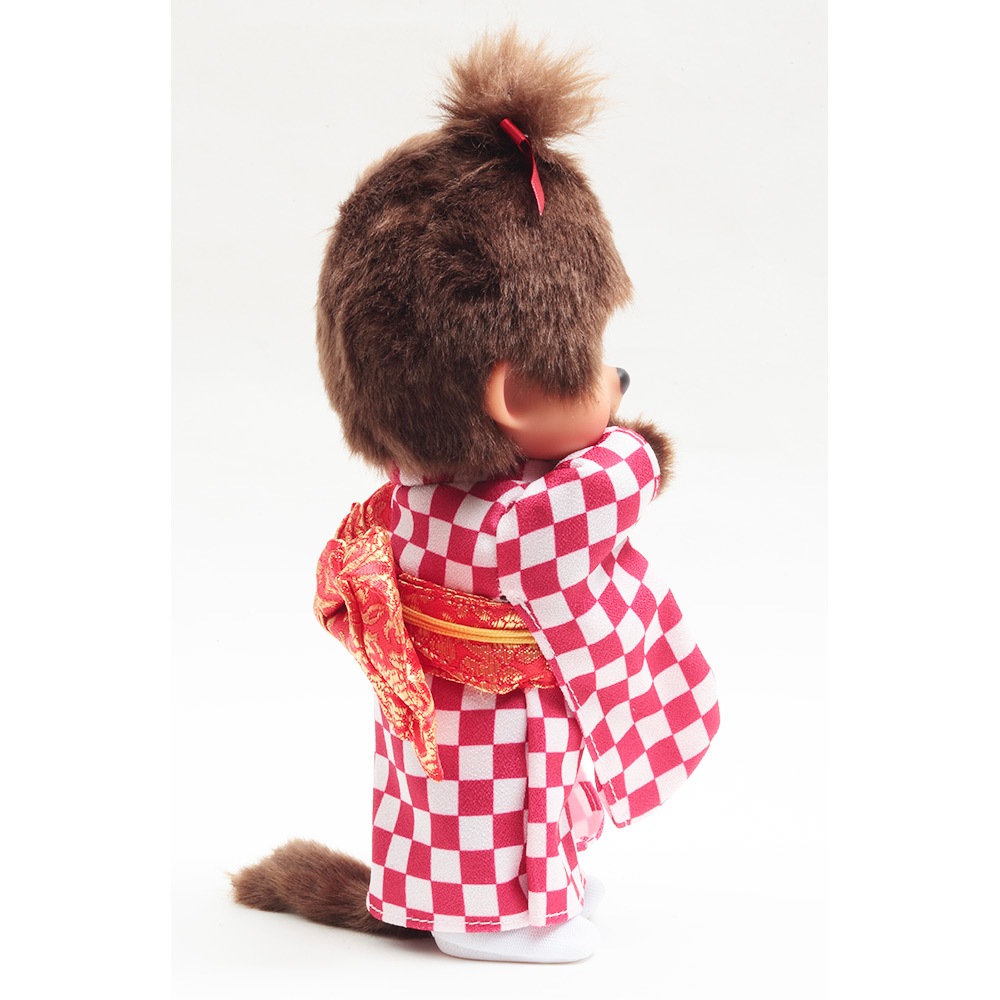 伝統的な市松模様の着物を着た可愛らしいモンチッチです。