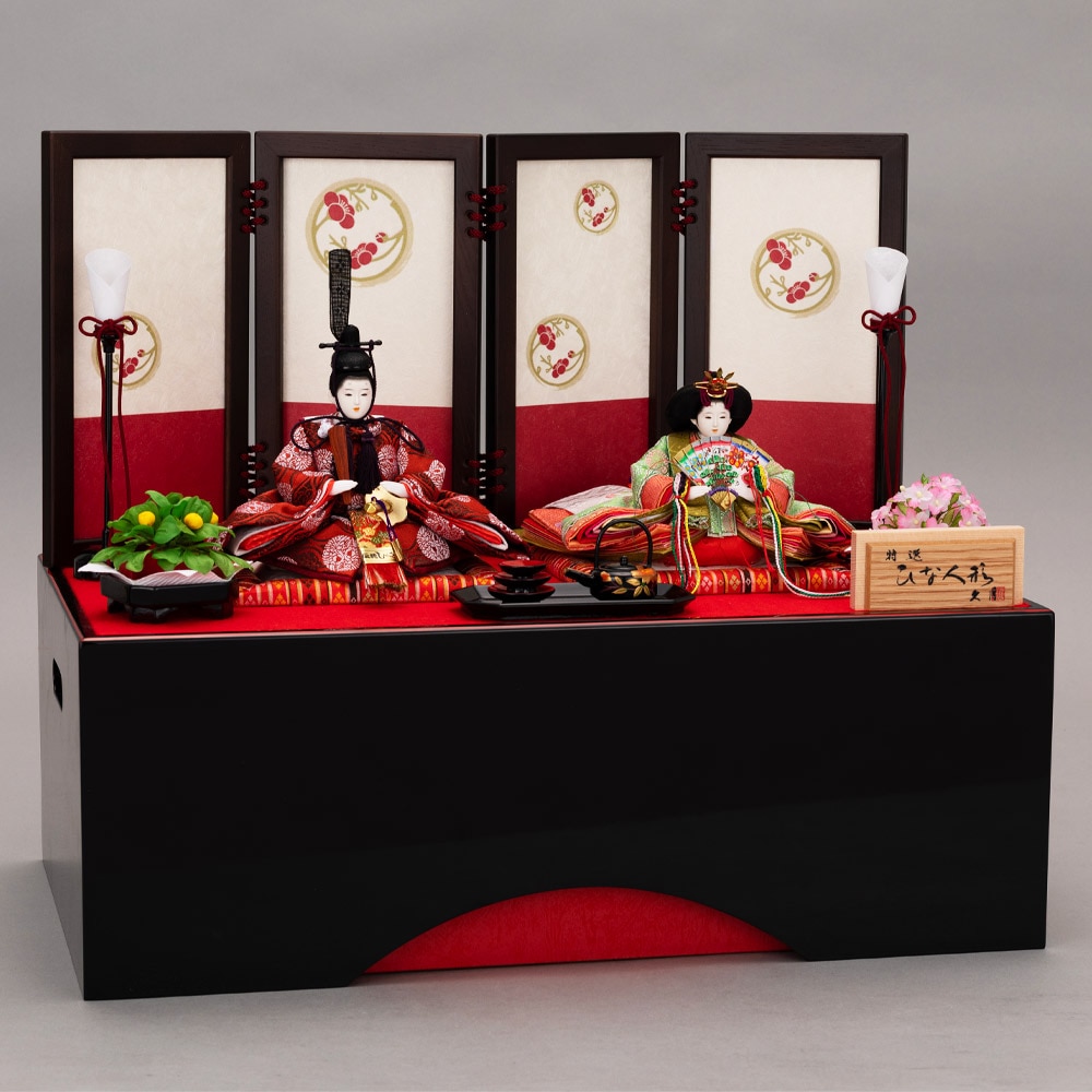 飾る場所を選ばないコンパクトなサイズ感が魅力の飾り台は、お人形の収納ボックスを兼ねており、省スペースに仕舞える点も特長です。