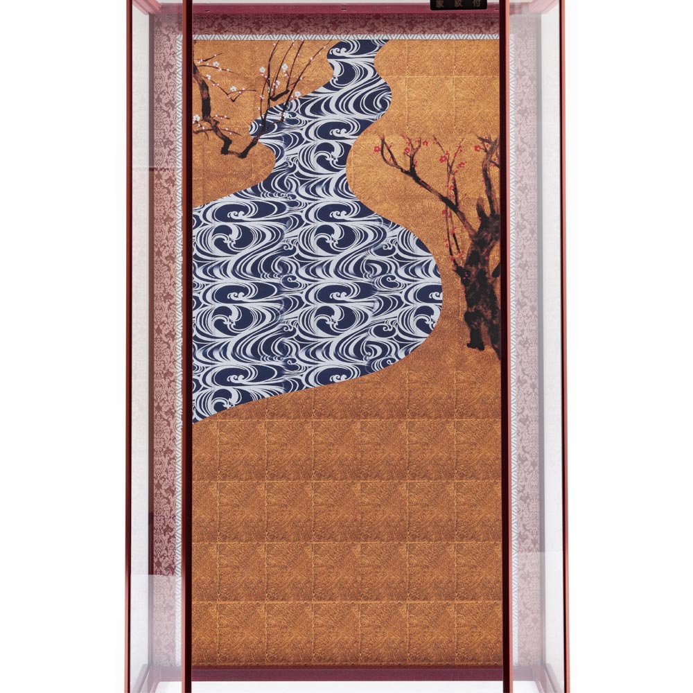 背景の絵柄に合わせ、矢籠にも梅柄の龍村裂をあしらったこだわりの仕立てです。