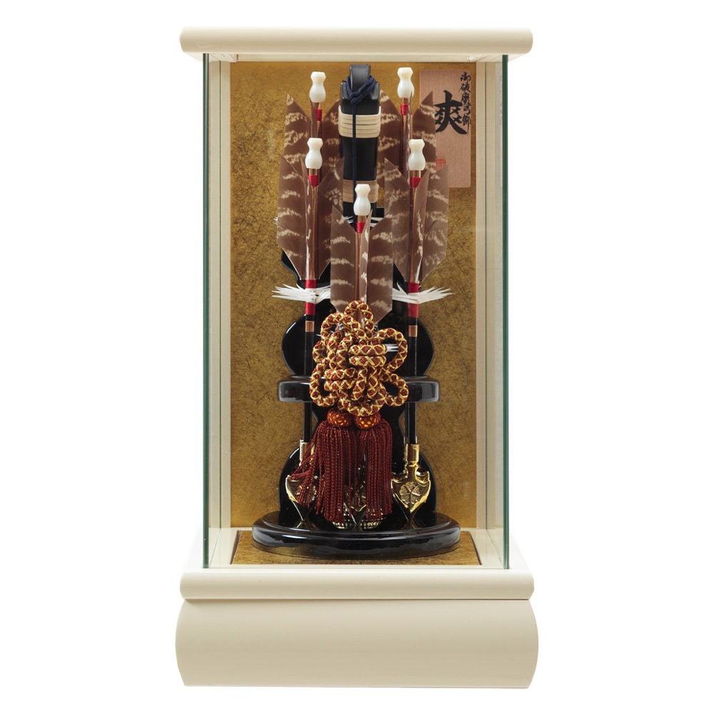 破魔弓ではめずらしいアイボリーのケース枠が目を引きます。