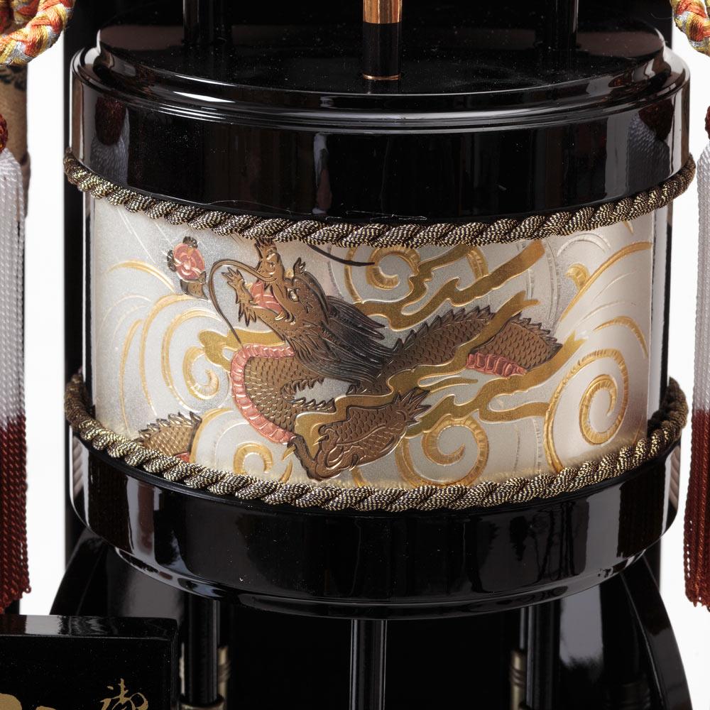 矢籠部分にあしらった龍柄の彫金が力強い印象を与えます。