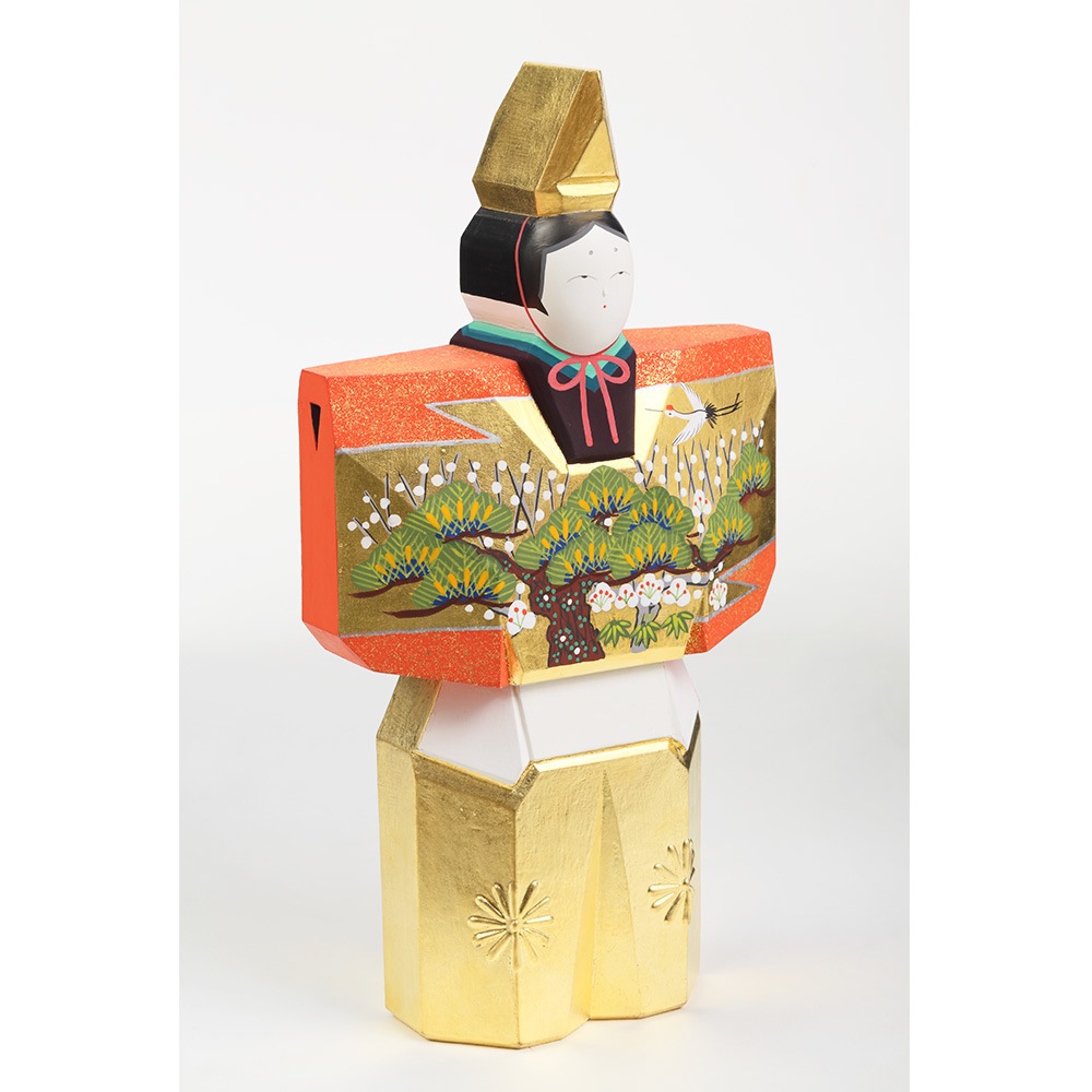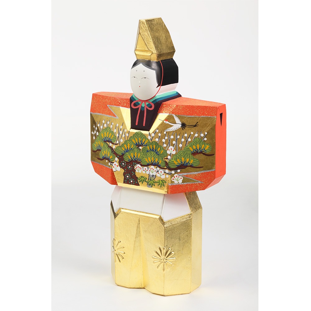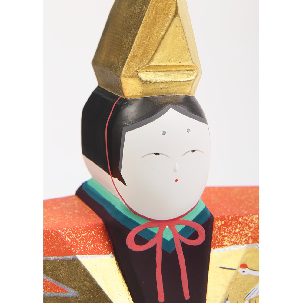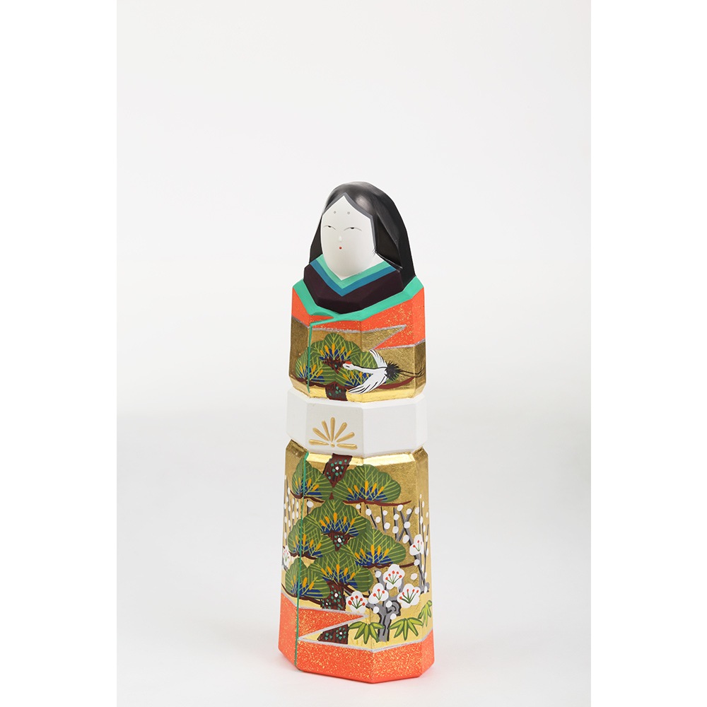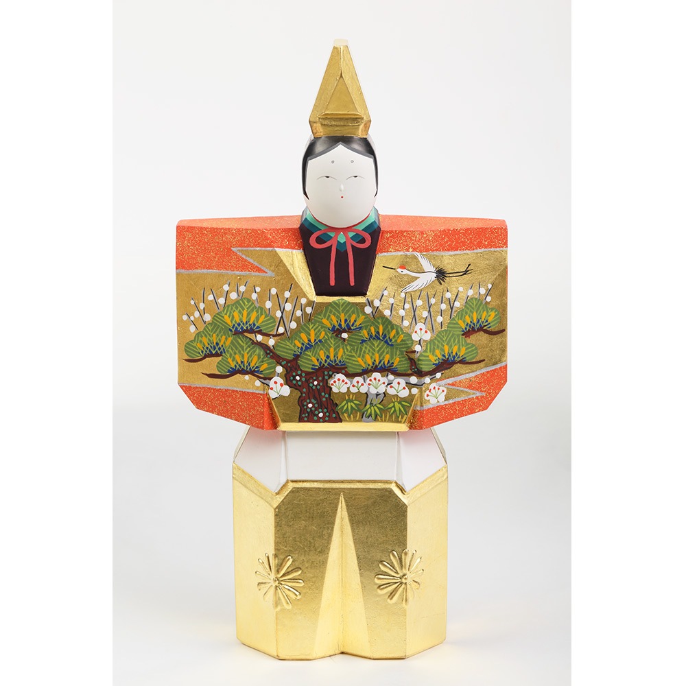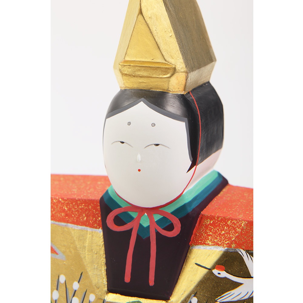 お人形にあしらわれている年中枯れることの無い松と成長の早さで知られる竹はどちらも生命力を象徴し、百の花に先駆けて咲くとされる梅は、早春に美しい花を咲かせることから開運の象徴とされ、大変縁起の良い吉祥のモチーフです。 鶴は、長寿や夫婦円満を象徴しています。