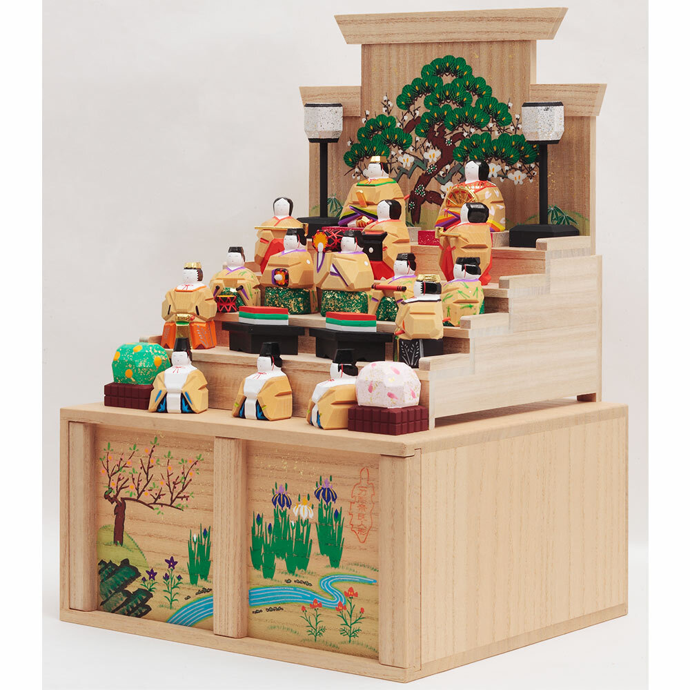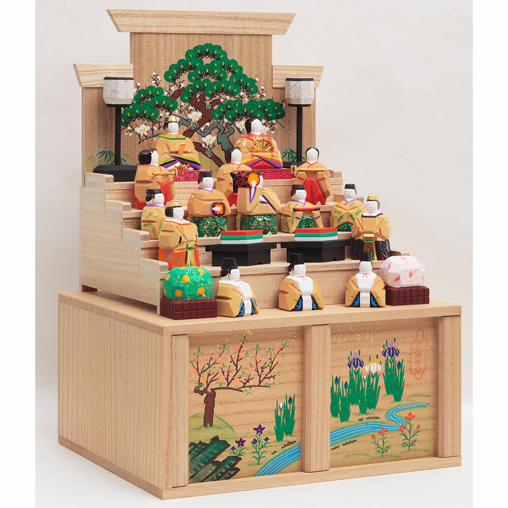 神泉作 奈良一刀彫 雛段 中一刀彫