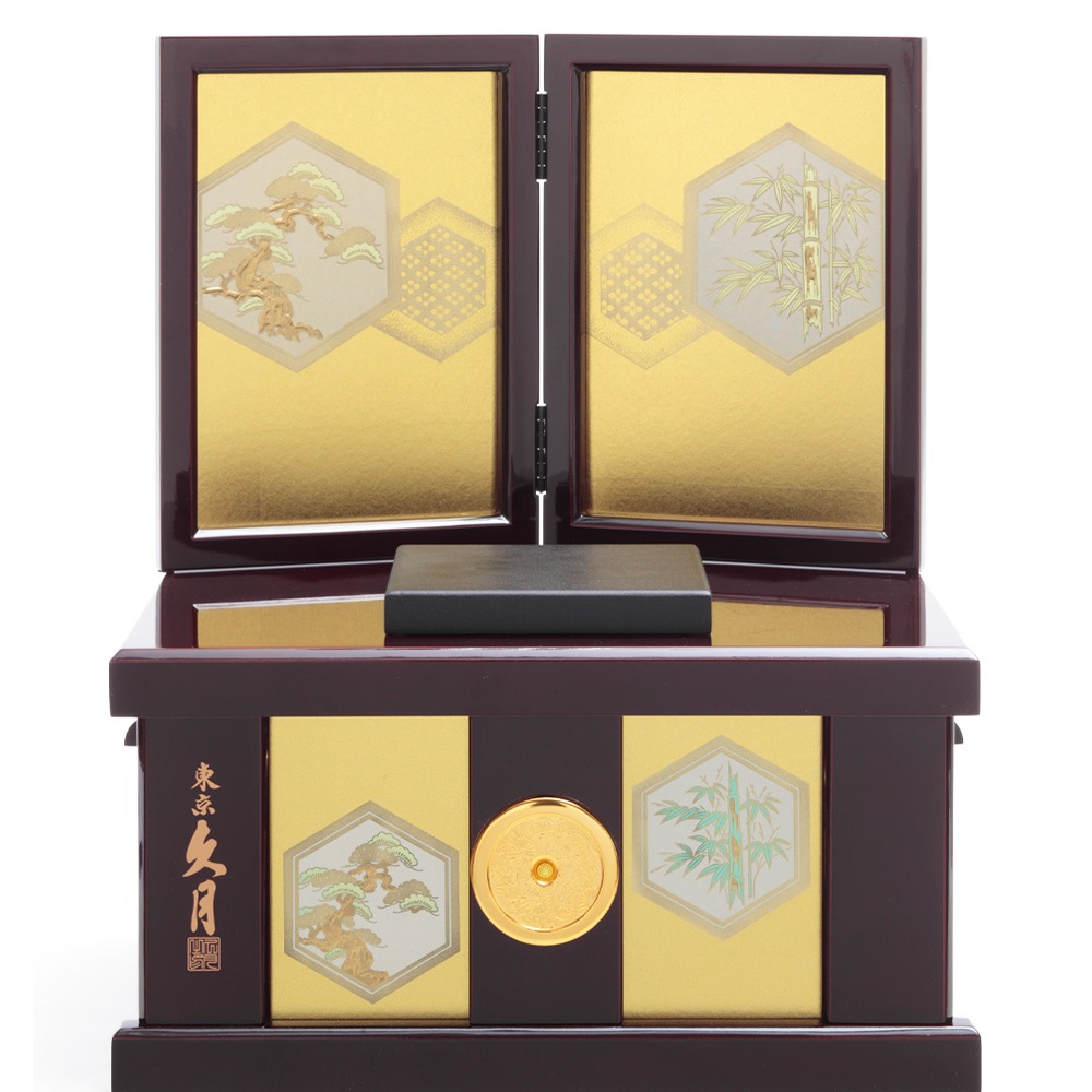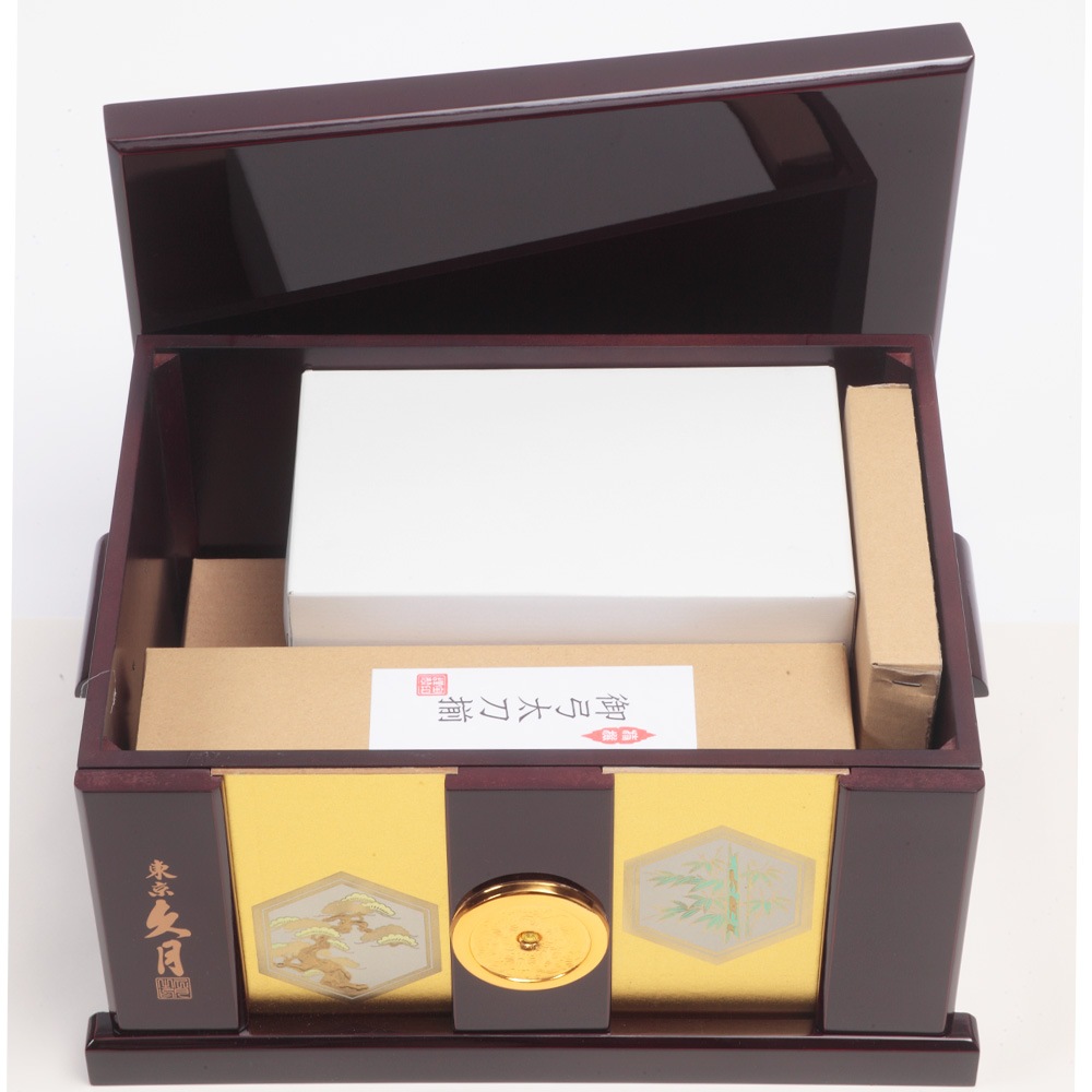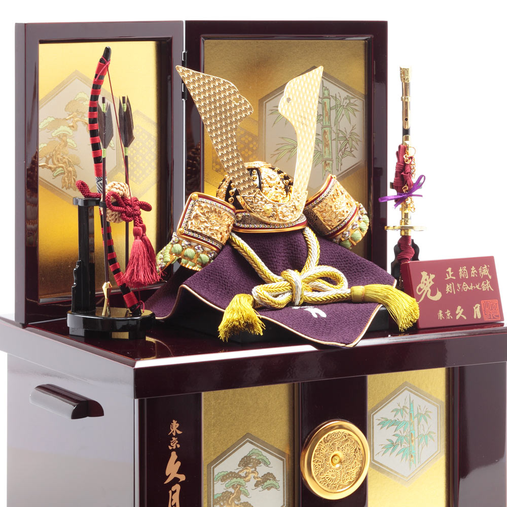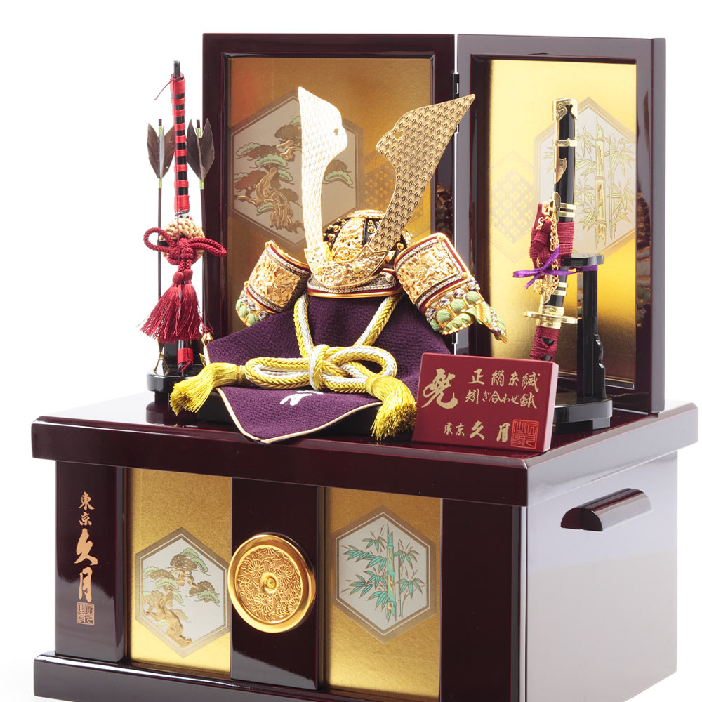 飾る場所を選ばないコンパクトなサイズ感も魅力の飾り台は、兜や弓太刀の収納ボックスを兼ねており、省スペースに仕舞える点も魅力です。