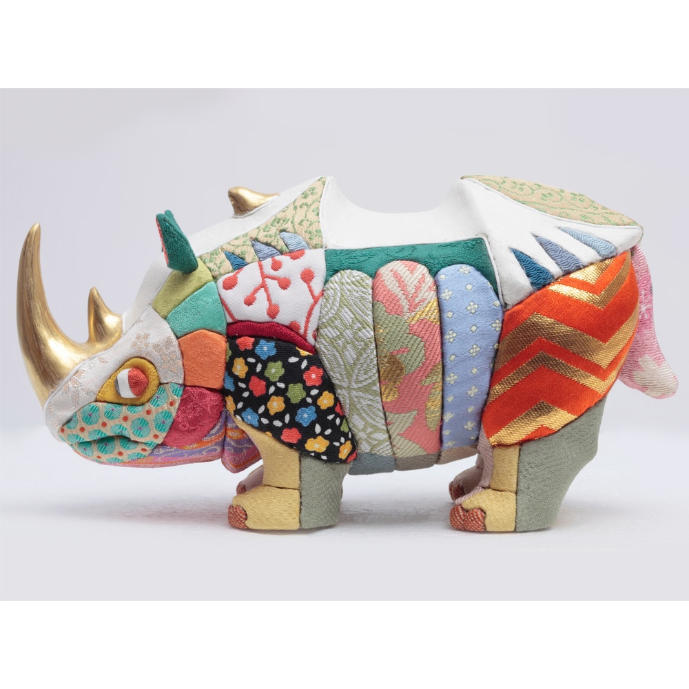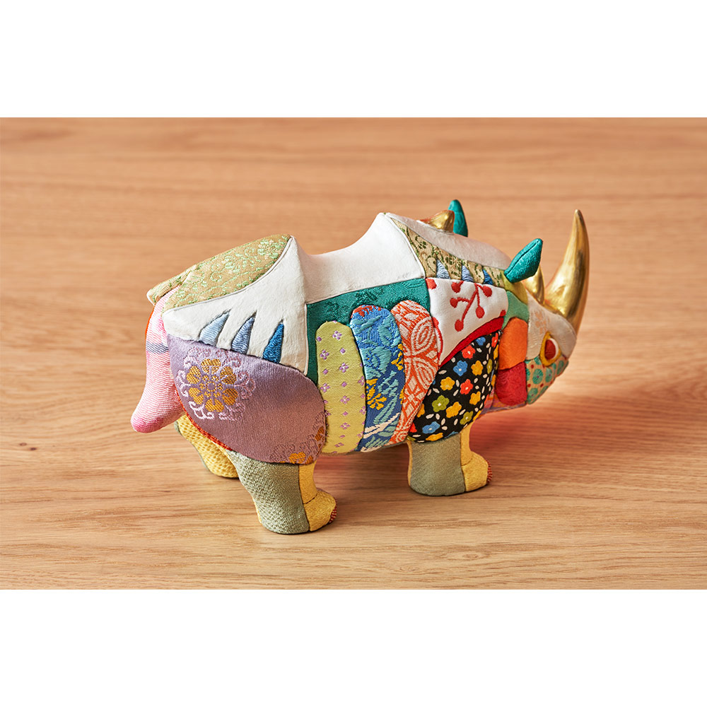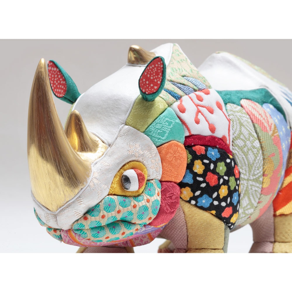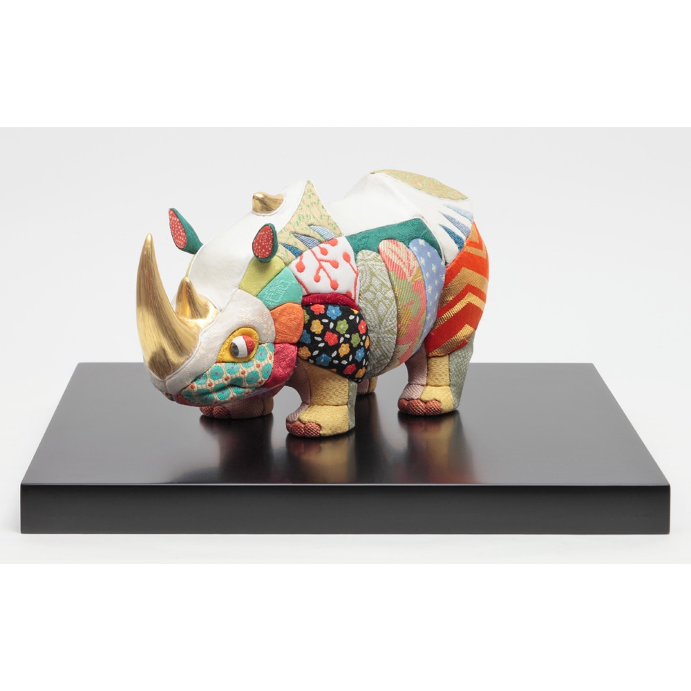 伝統工芸士・幸一光が手掛けた、動物を題材にした木目込飾り"Animaシリーズ"の犀(さい)です。