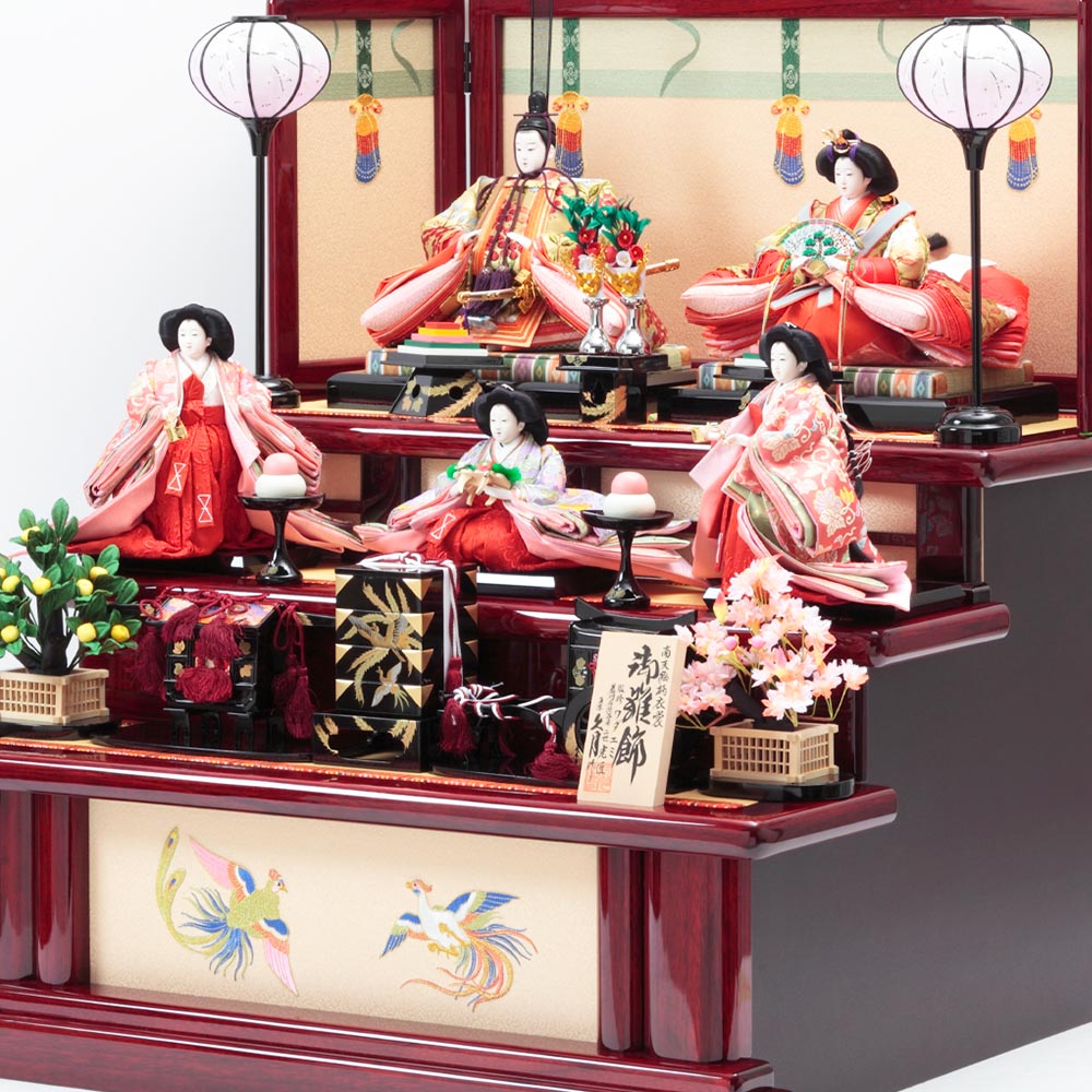 米アカデミー賞を受賞するなどして活躍した、日本を代表する衣裳デザイナーのワダエミが監修し、伝統工芸士・二世光匠が丁寧に着せ付けを行った豪華な親王官女飾りです。