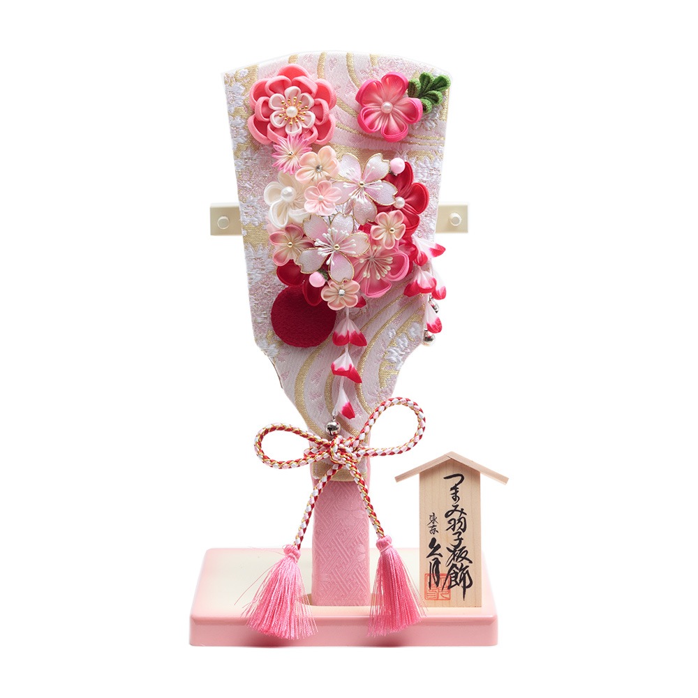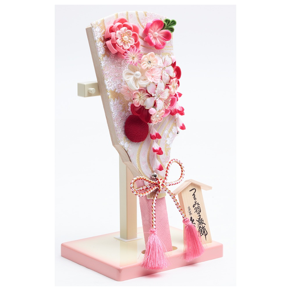 季節のインテリアとしてもピッタリのつまみ細工を用いた可愛らしい羽子板飾り。