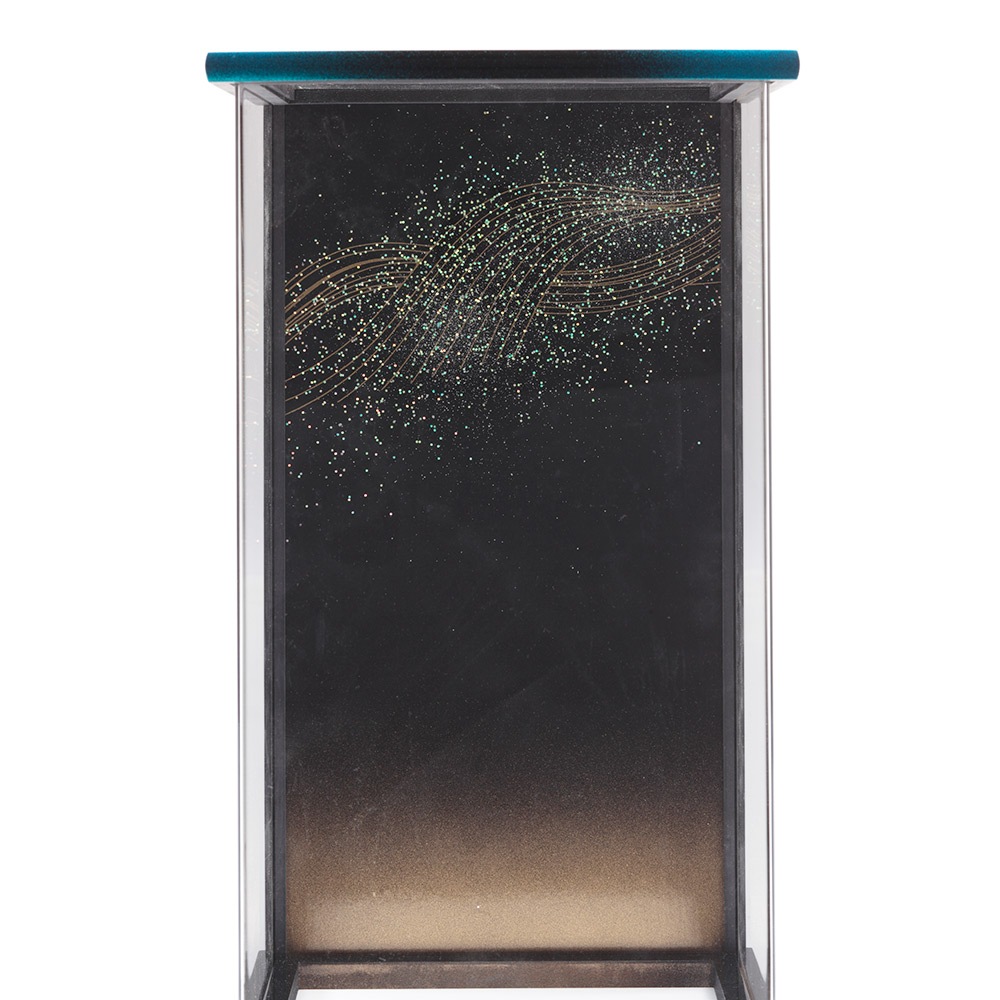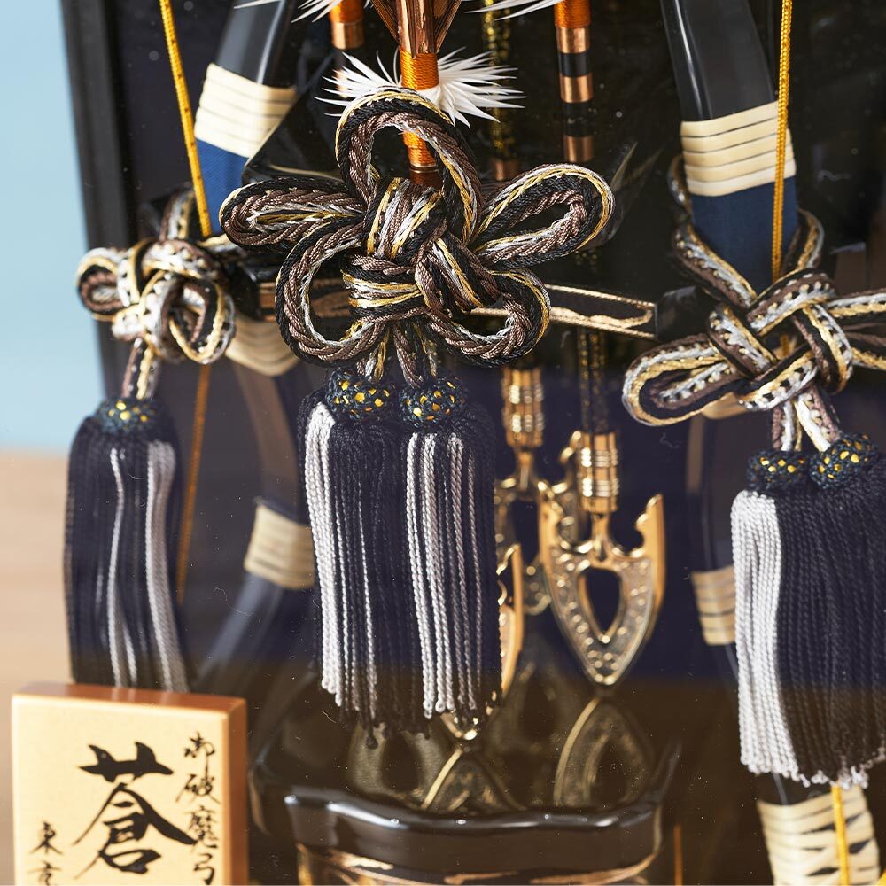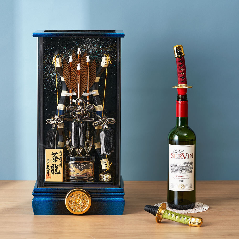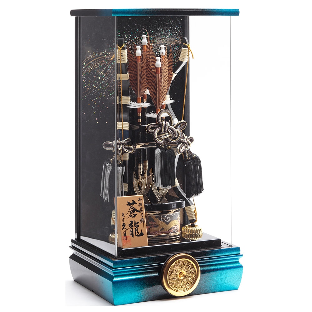 スタイリッシュな青黒ぼかしのアクリルケースがひときわ目を引く破魔弓ケース飾り。