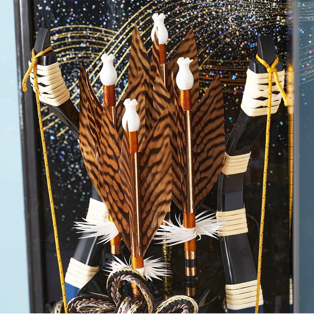 破魔弓は、もともと四方を射って魔を鎮める神事を基としており、原型は鎌倉時代から続く縁起物です。