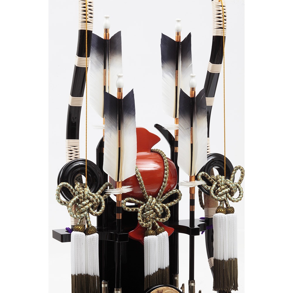 破魔弓は、もともと四方を射って魔を鎮める神事を基としており、原型は鎌倉時代から続く縁起物です。