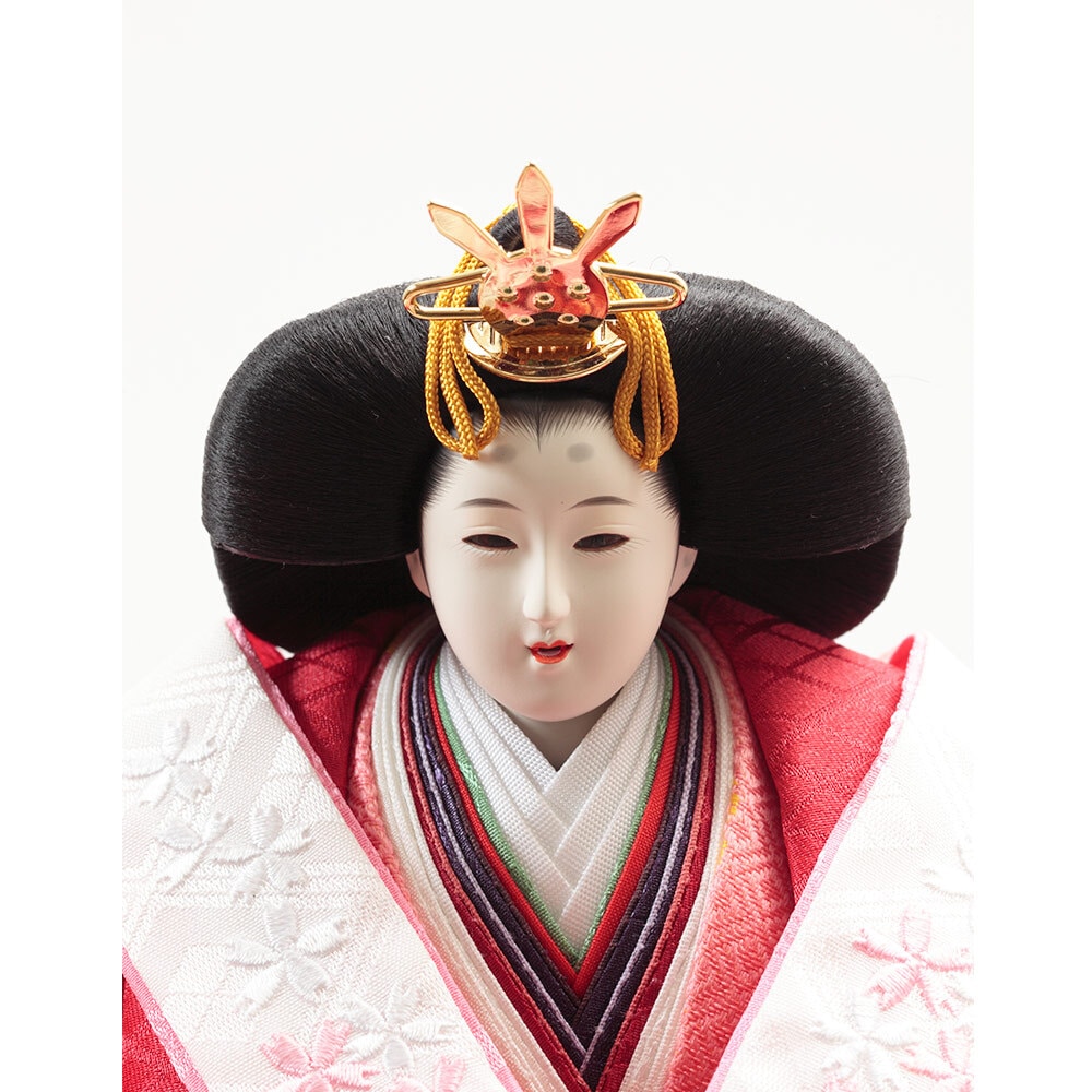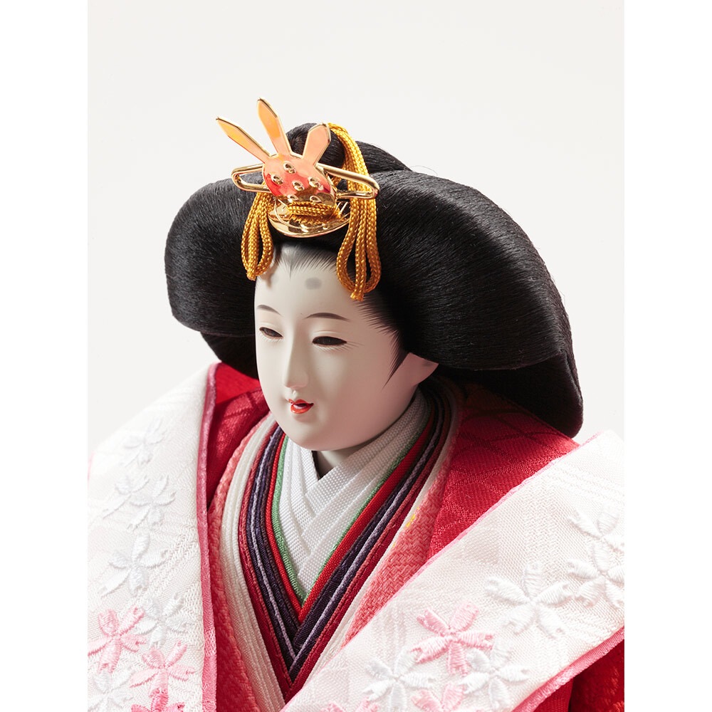 金彩刺繍の豪華なお衣裳を着た親王官女が華やかなセットになっております。