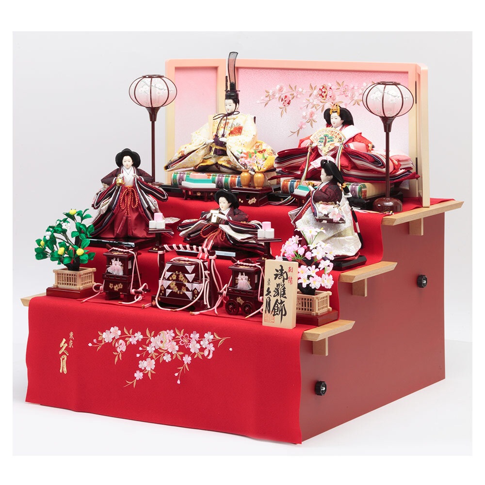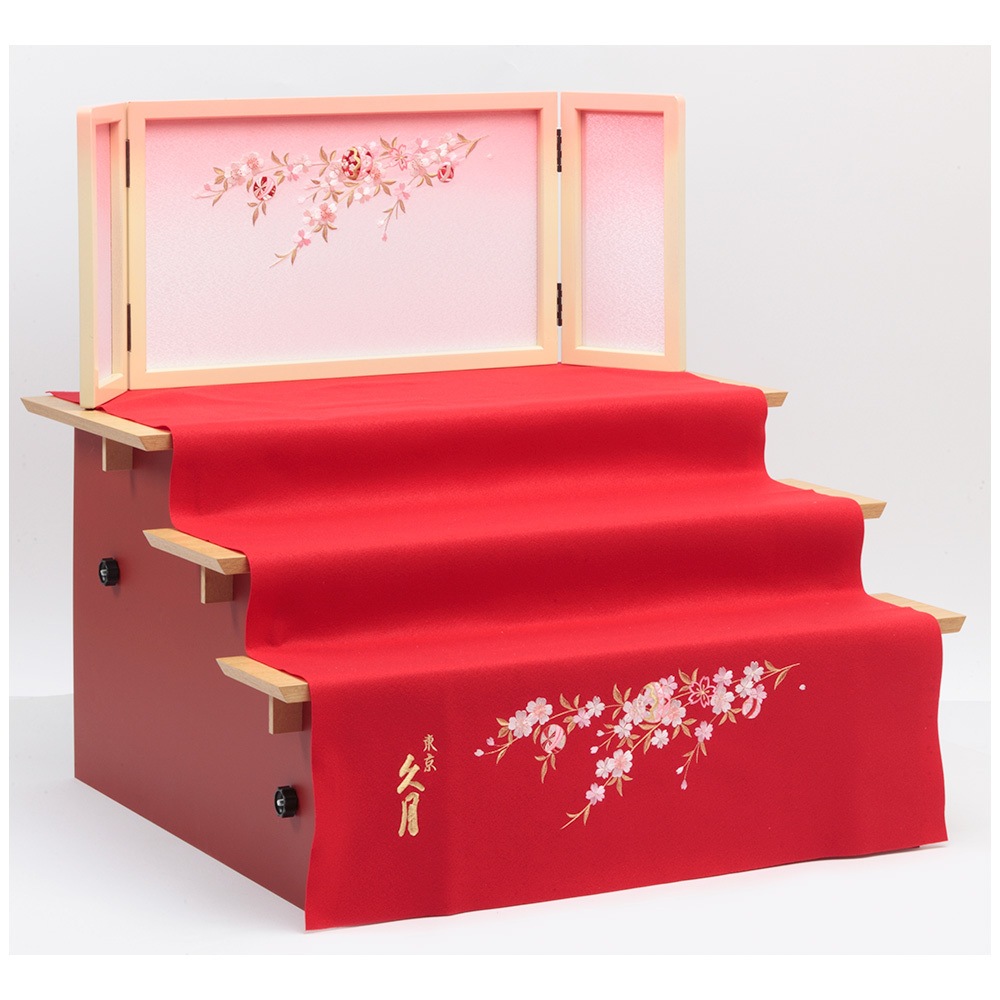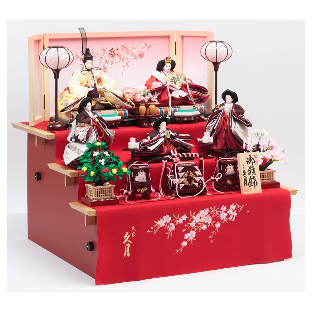 魔よけを意味する赤の毛せんを使用した毛せん三段親王官女飾りです。