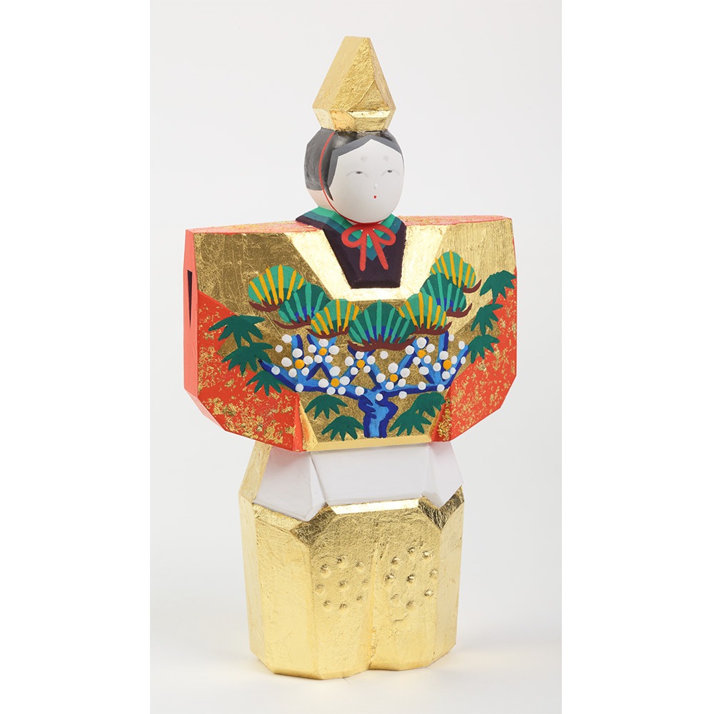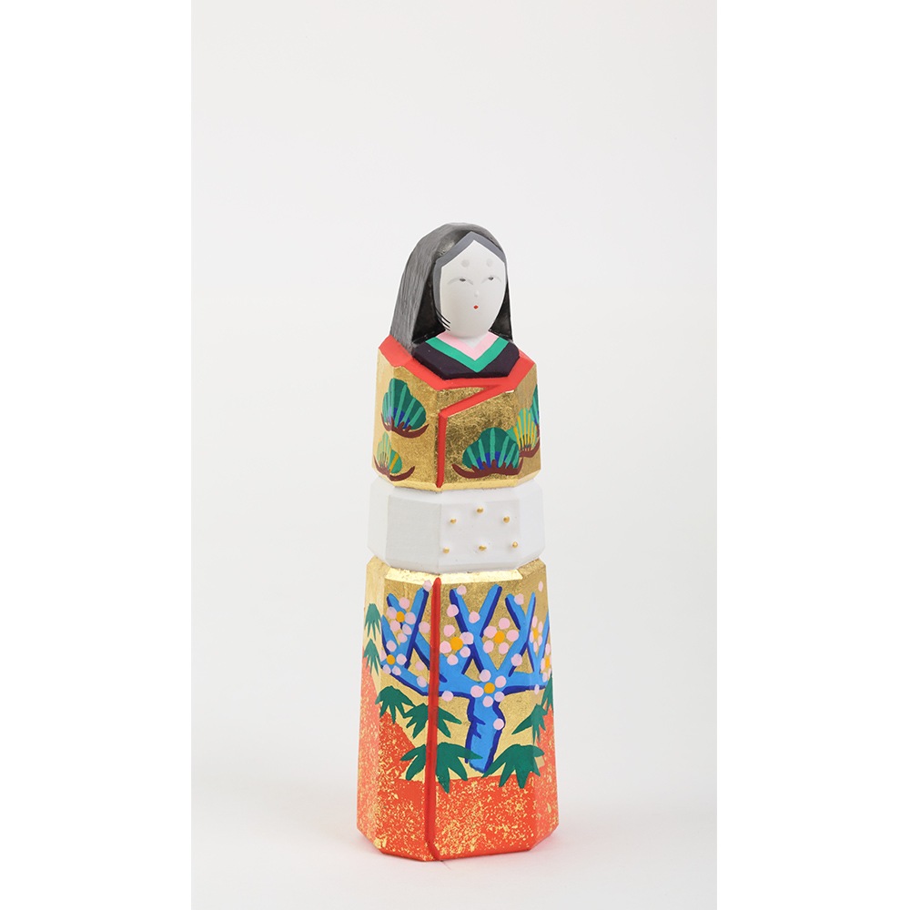 お人形にあしらわれている年中枯れることの無い松と成長の早さで知られる竹はどちらも生命力を象徴し、百の花に先駆けて咲くとされる梅は、早春に美しい花を咲かせることから開運の象徴とされ、大変縁起の良い吉祥のモチーフです。