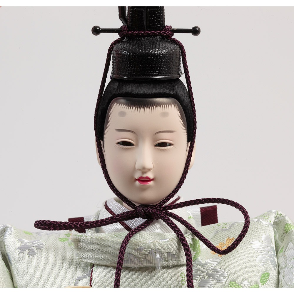ケース背景に描いた桜の絵柄に合わせて、女雛と男雛の衣裳にも美しい桜をあしらいました。