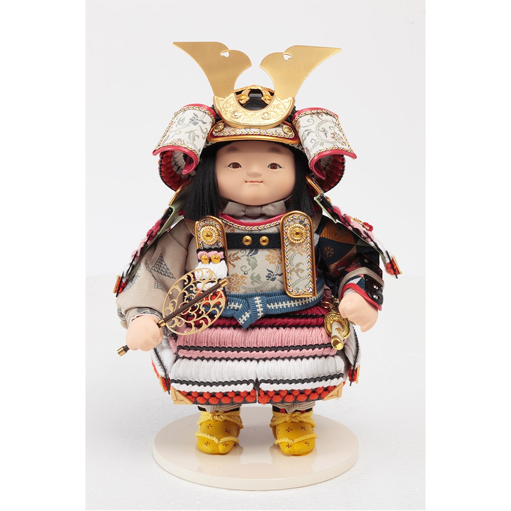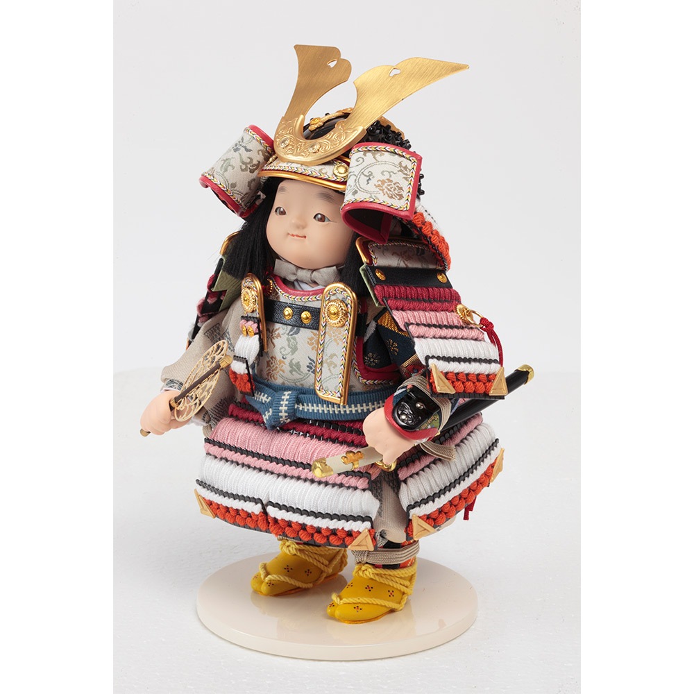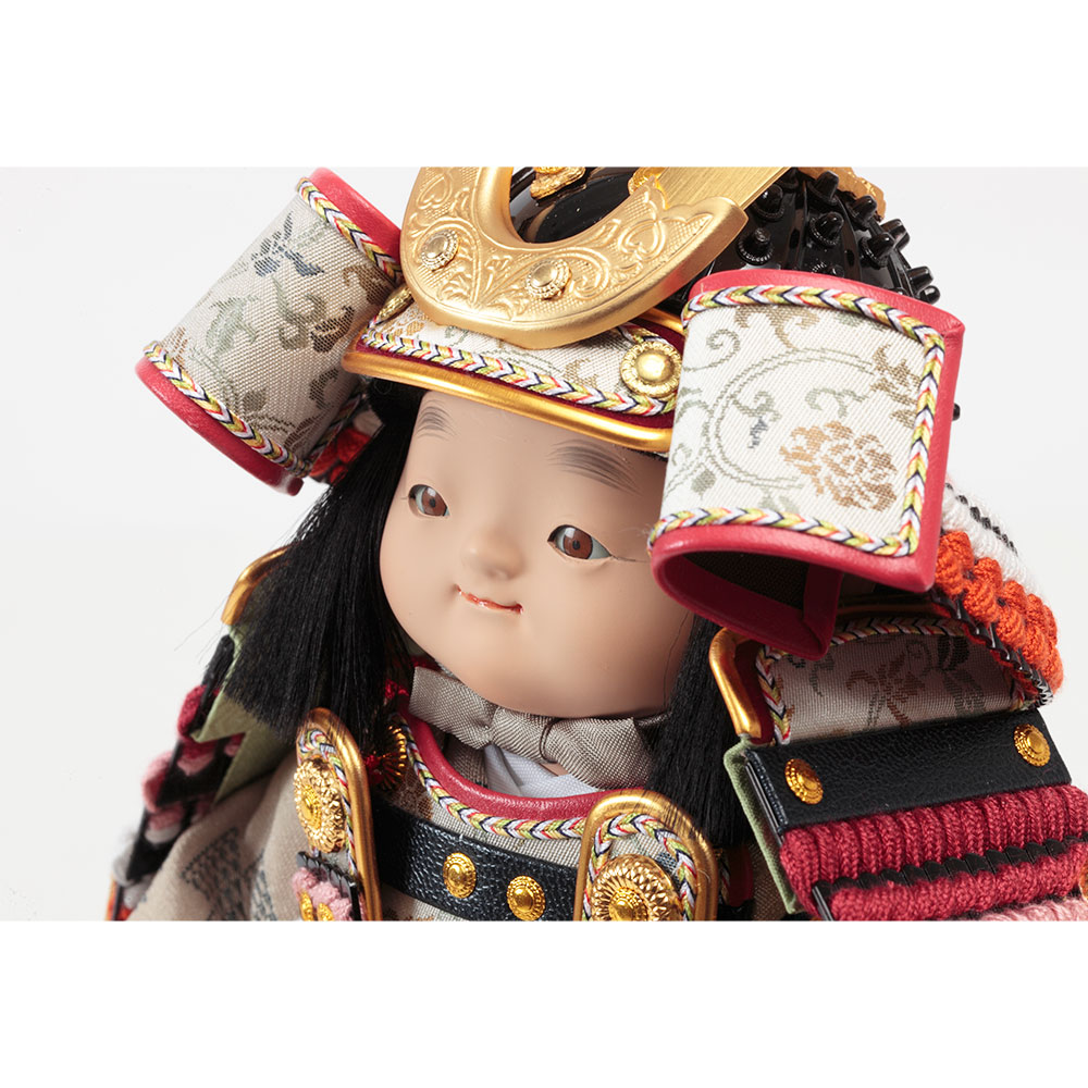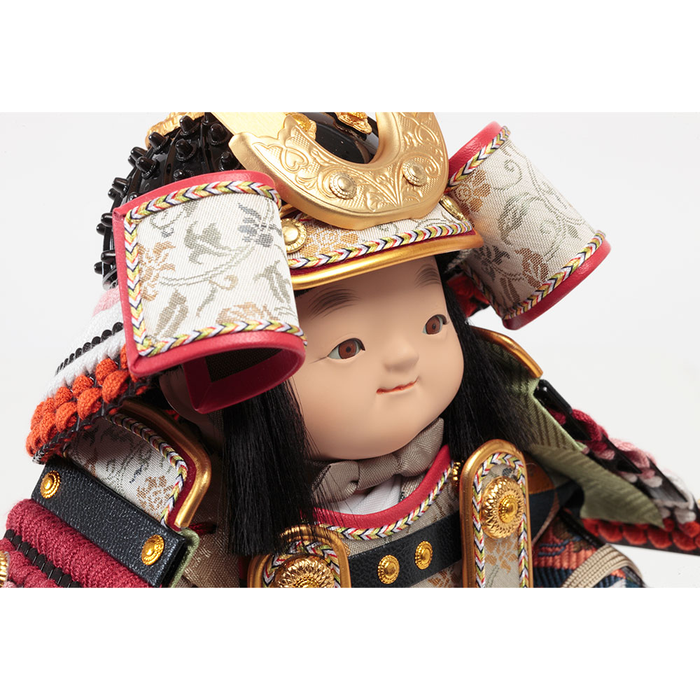 伝統工芸士・幸一光が丁寧に仕立てた、ぷっくらと愛らしいお顔立ちが魅力の鎧着大将飾りです。