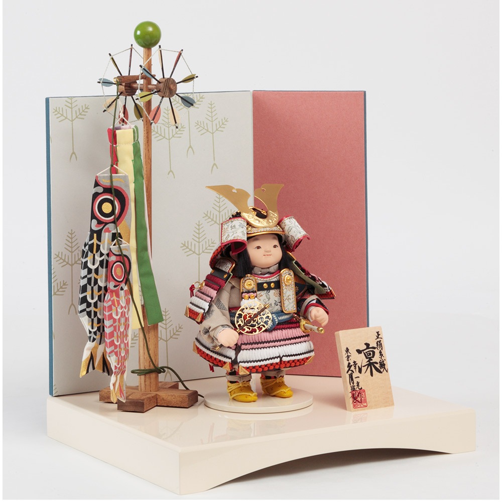 大将飾りは、鎧を凛々しくまとった愛らしい男の子のお人形です。