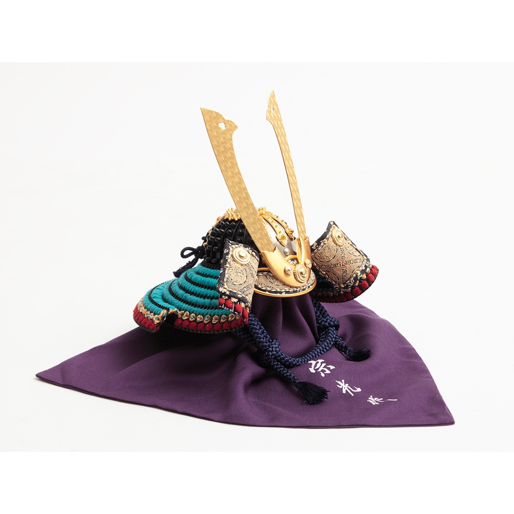 源氏の英雄として後世の武将からも慕われた、源義家公で有名な浅葱糸縅の兜飾りです。