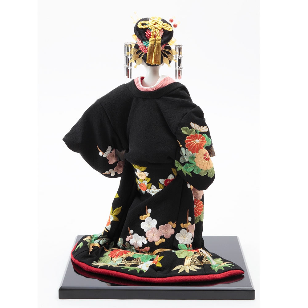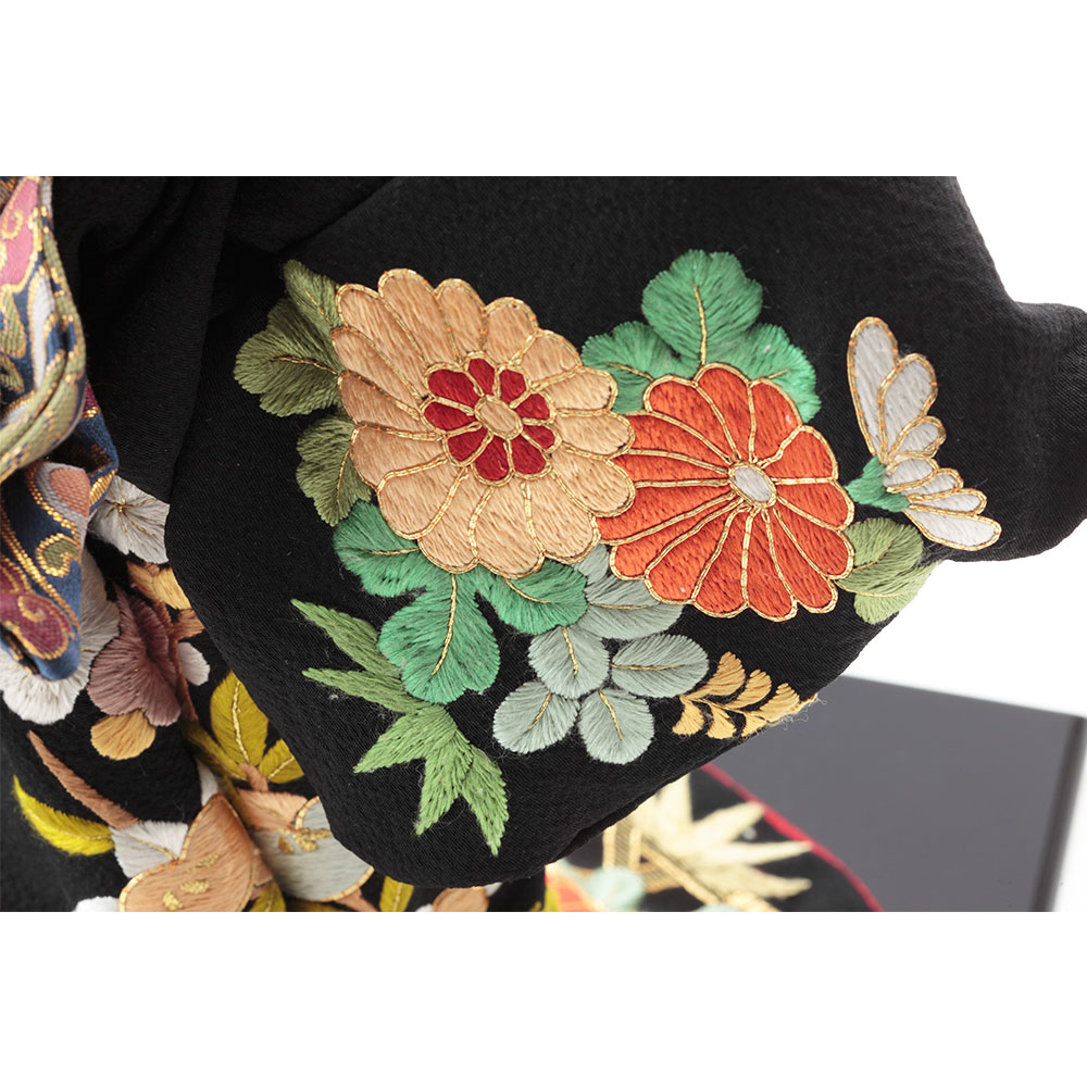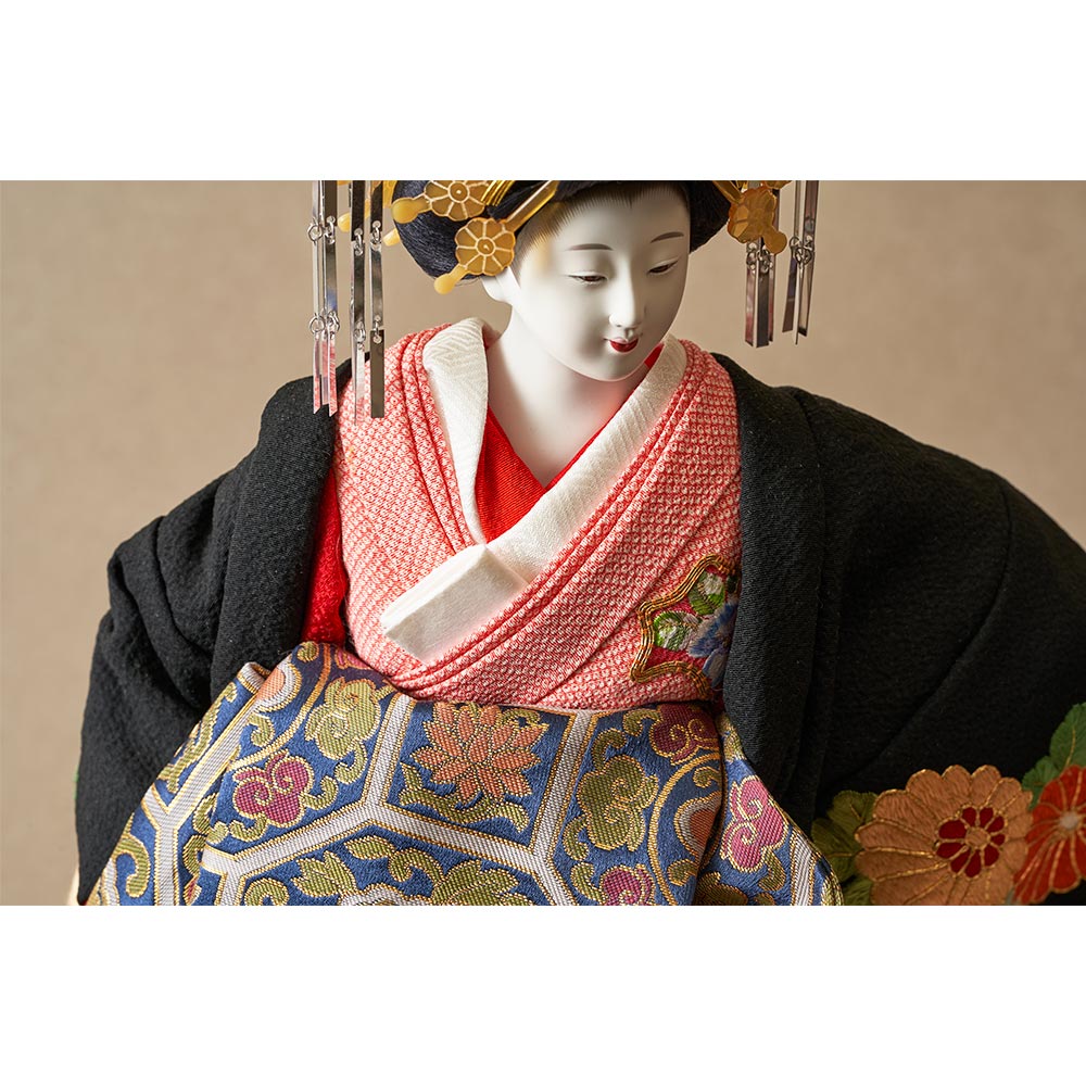黒の正絹打掛の衣裳が華やかな尾山人形です。