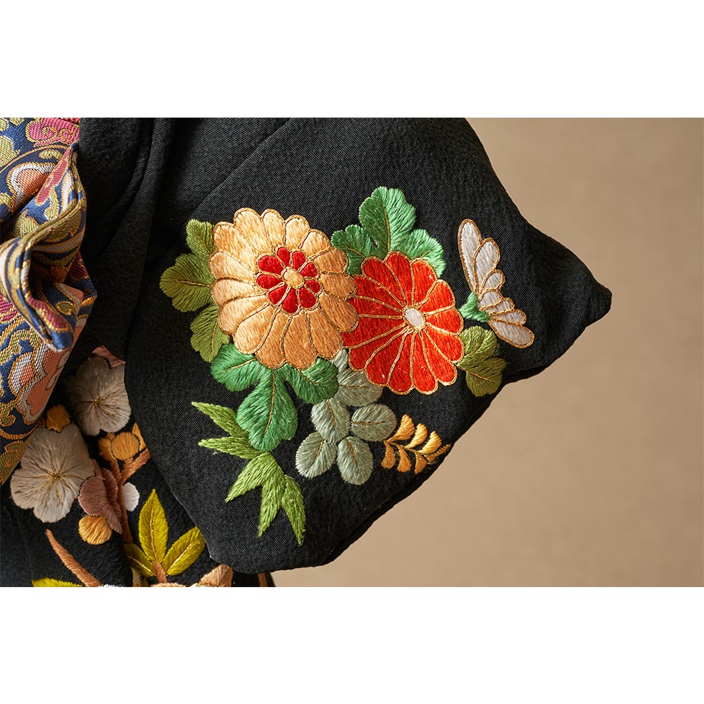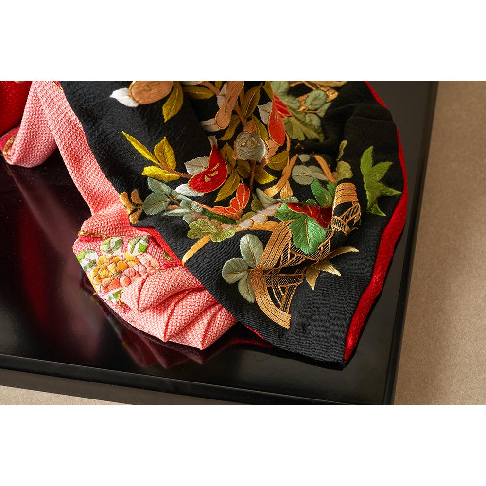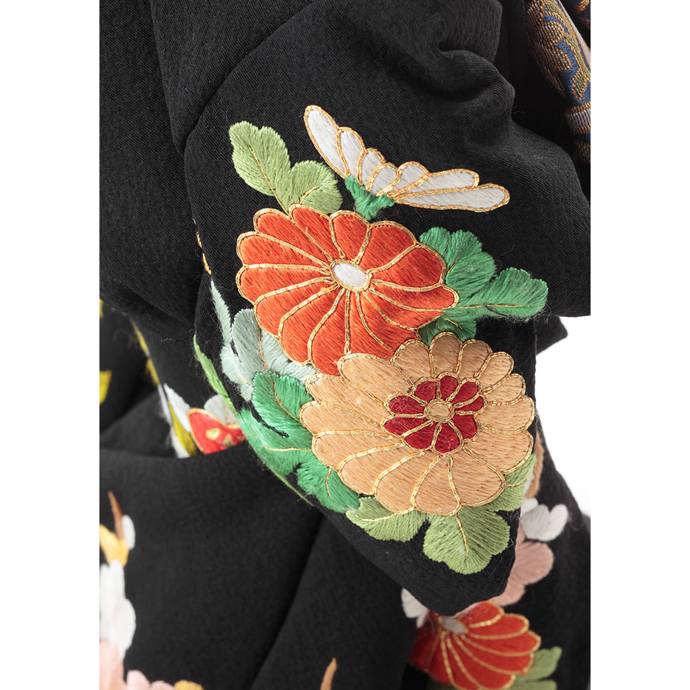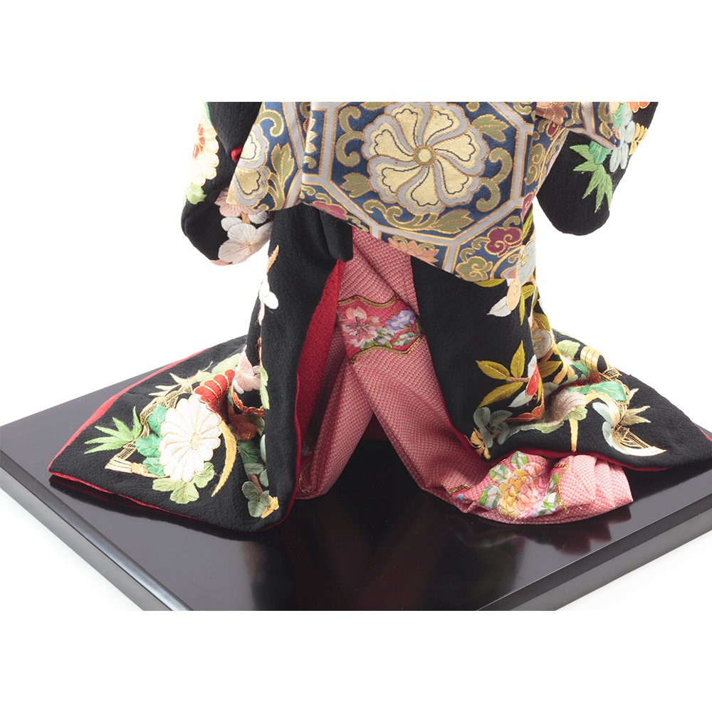 黒の正絹打掛の衣裳が華やかな尾山人形です。