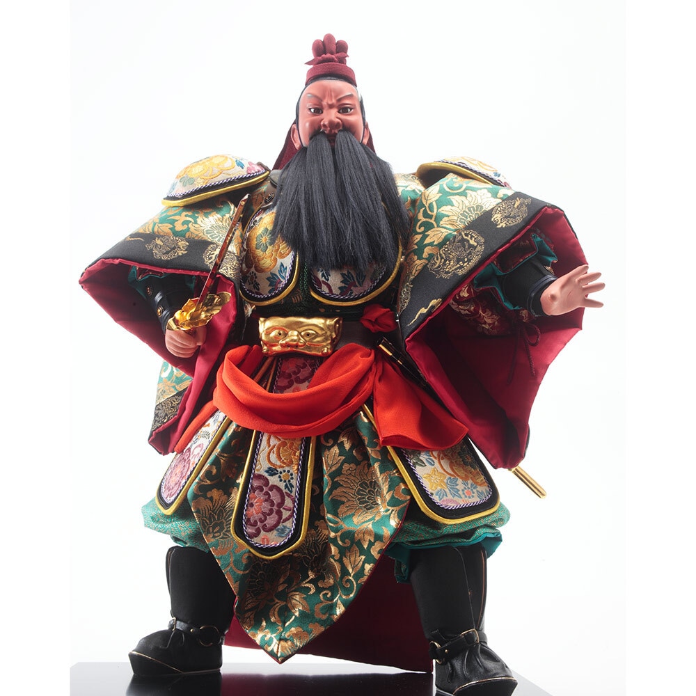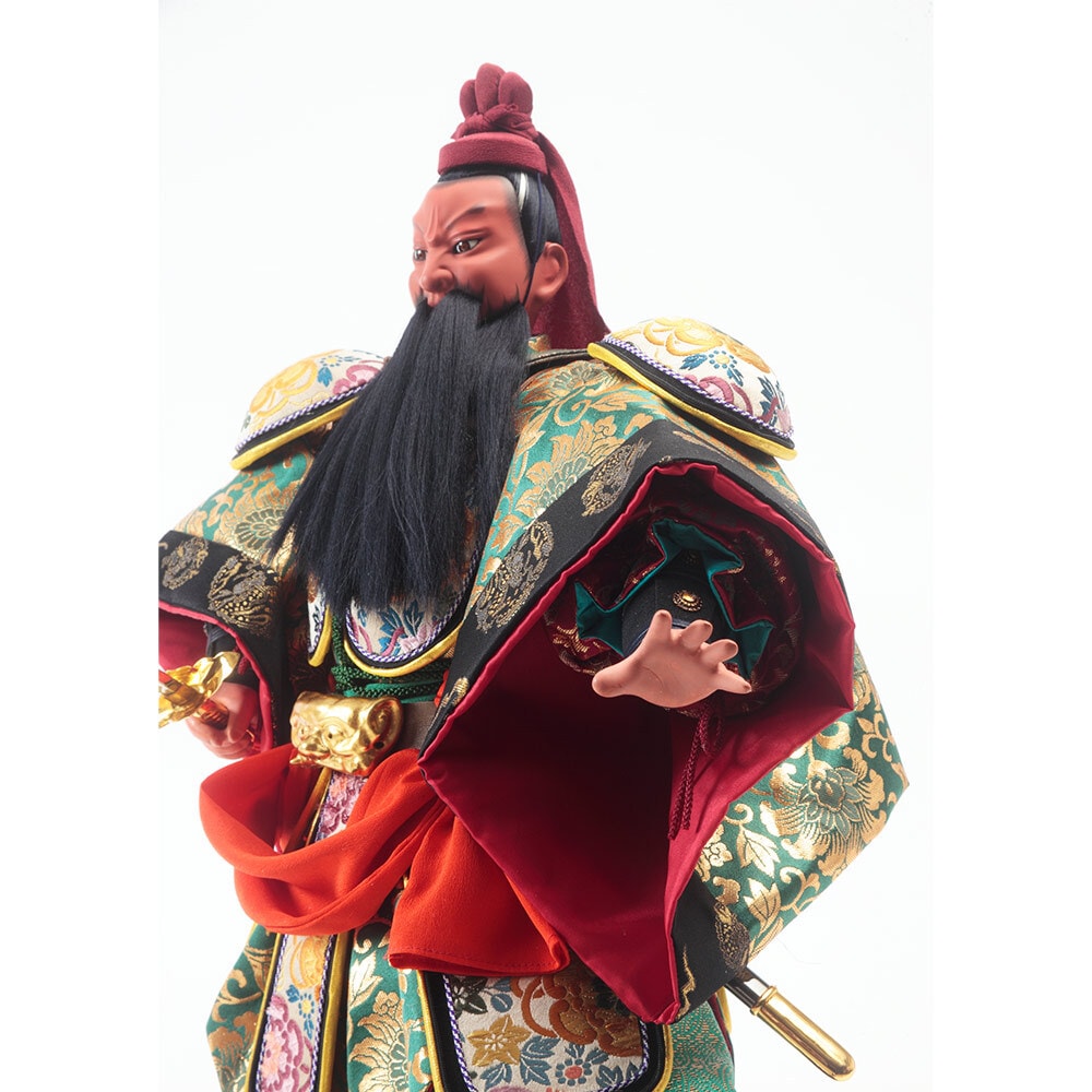 伝統工芸士・津田蓬生が細部までこだわって仕立てた勇壮な関羽の人形です。