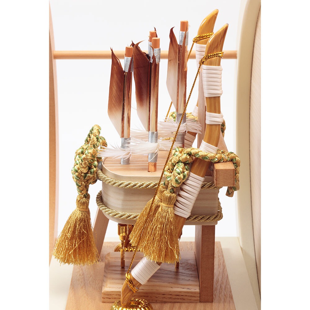 破魔弓は、もともと四方を射って魔を鎮める神事を基としており、原型は鎌倉時代から続く縁起物です。