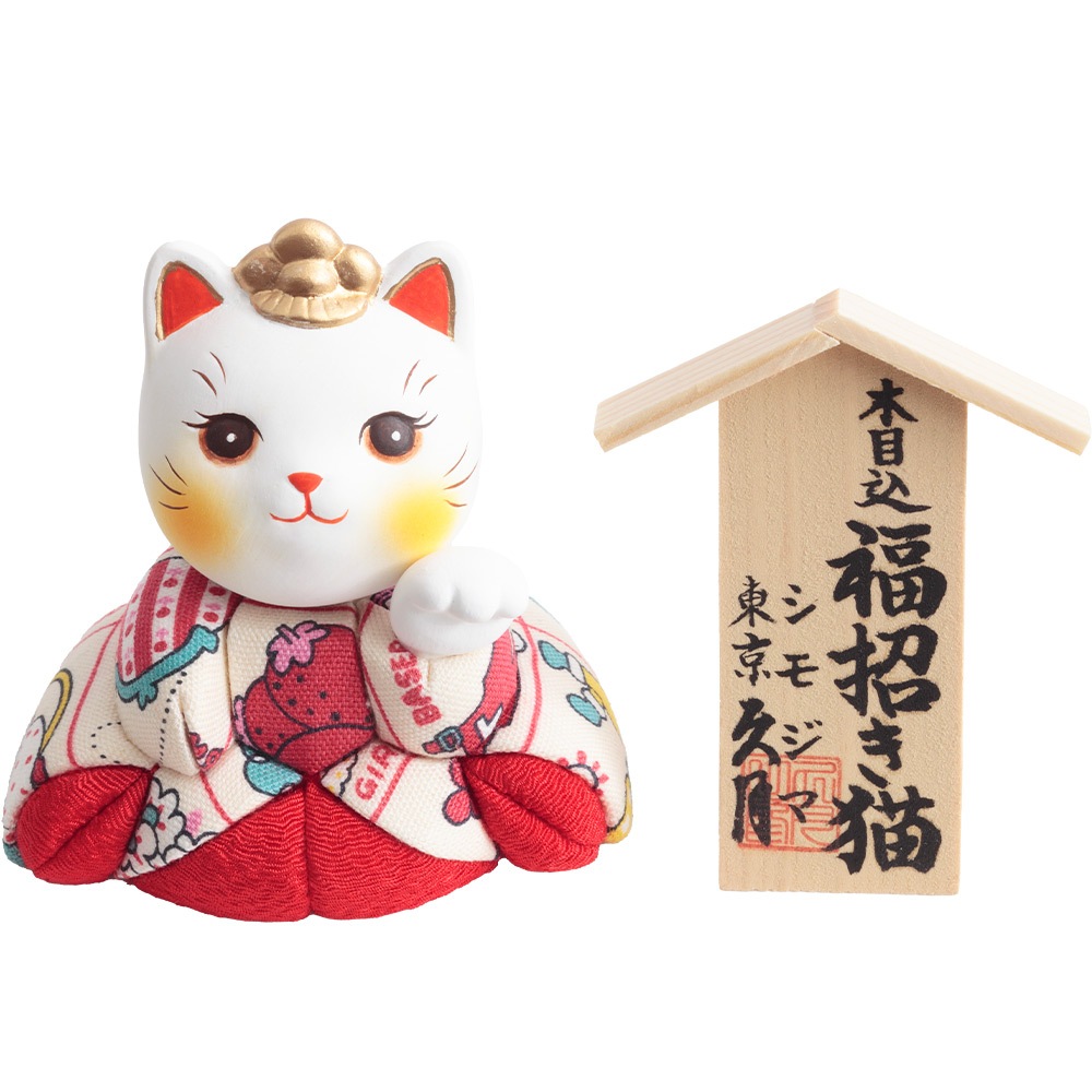 シモジマとのコラボレーションにより誕生した、昭和レトロシリーズの木目込福招き猫です。