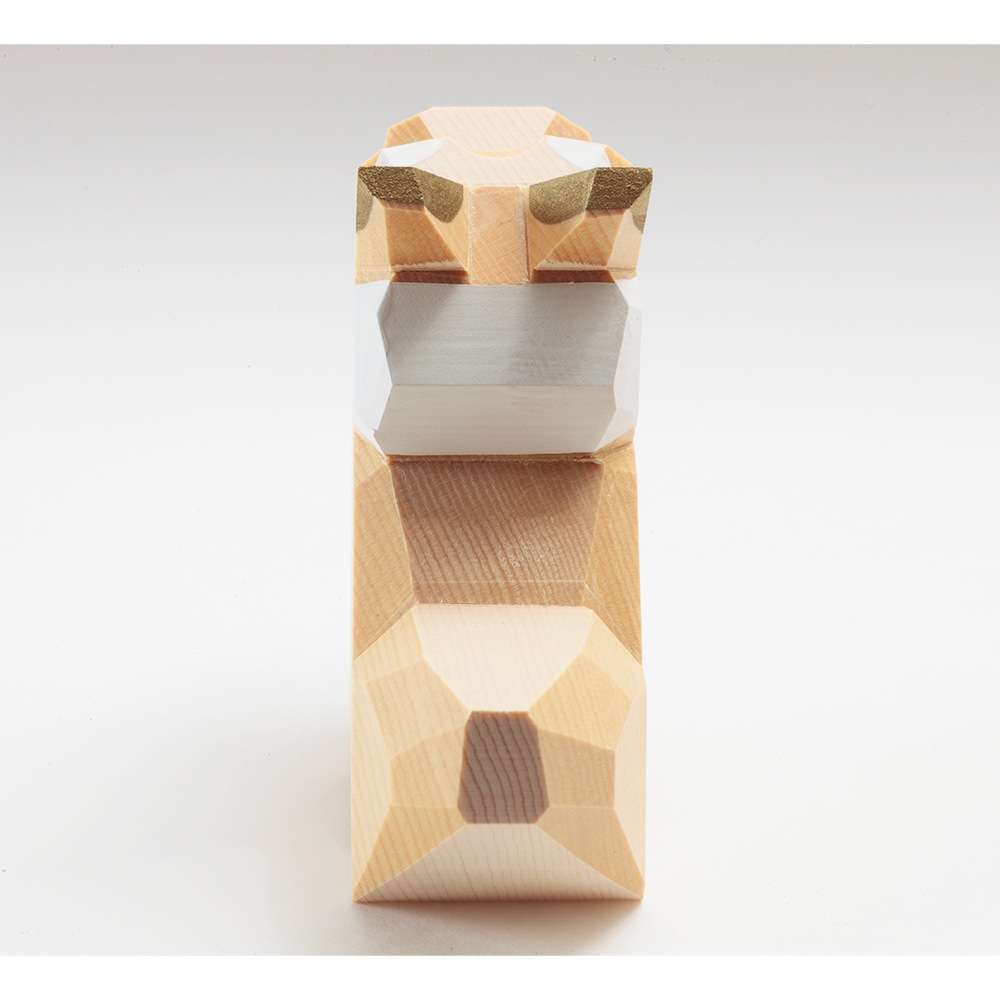 南雲工房作「伊予一刀彫」は、物の形の無駄なラインを取り除いていき、シンプルに表現していく木彫り技法で、独特の淡い彩色を施した優しい雰囲気が特徴です。彫刻刀の切れ味がダイレクトに伝わる味わい深いお人形です。
