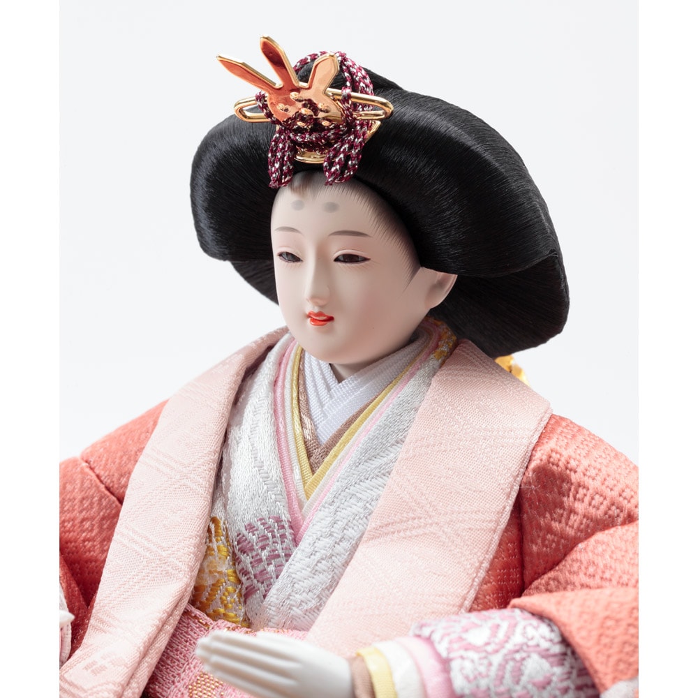 春らしい明るく晴れやかな雰囲気の中にも、飽きの来ない伝統美を感じさせる、可愛らしく優し気な佇まいに魅せられるおひなさまです。