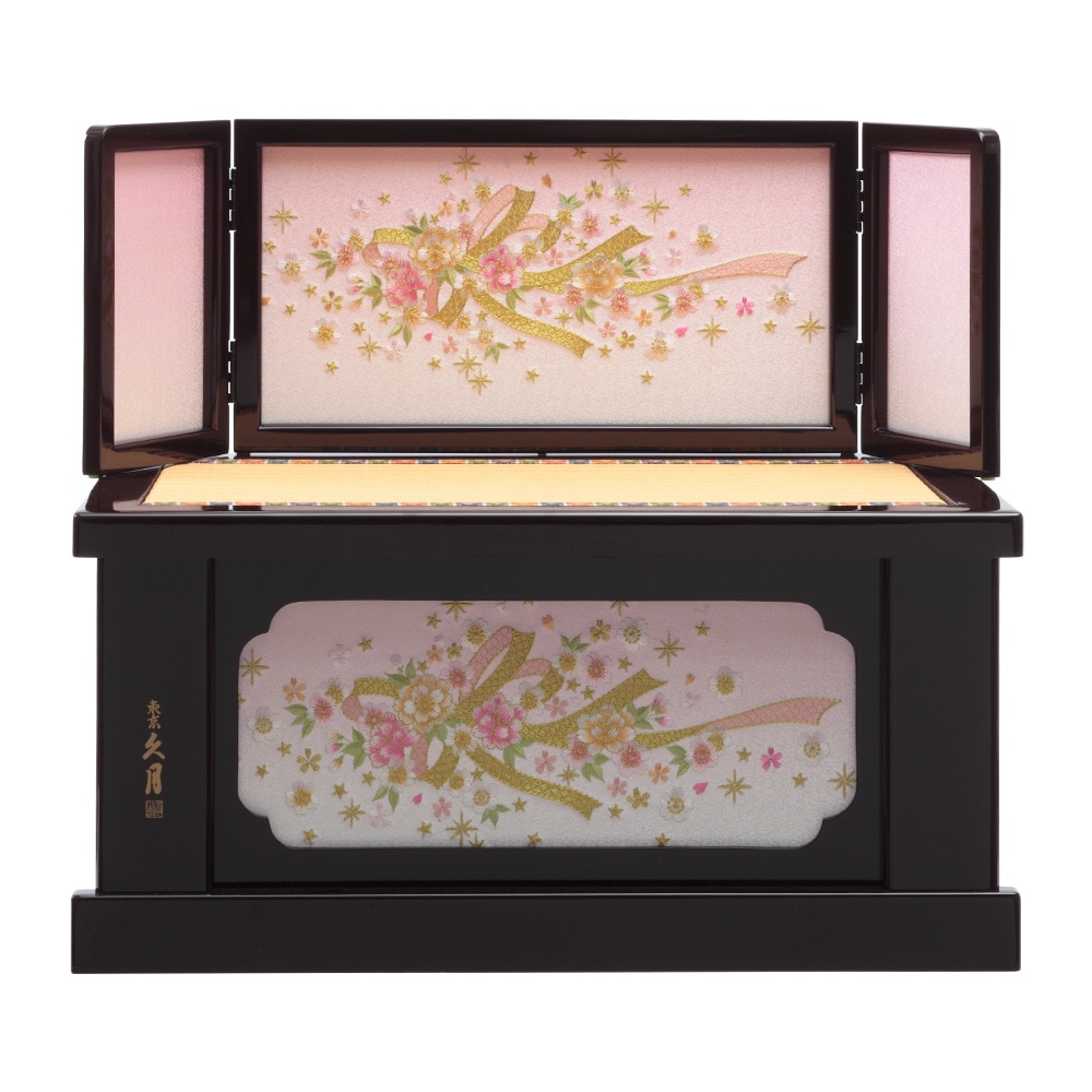 上品で落ち着いた色合いの飾り台は、便利な収納ボックスを兼ねており、省スペースに仕舞える点も魅力です。