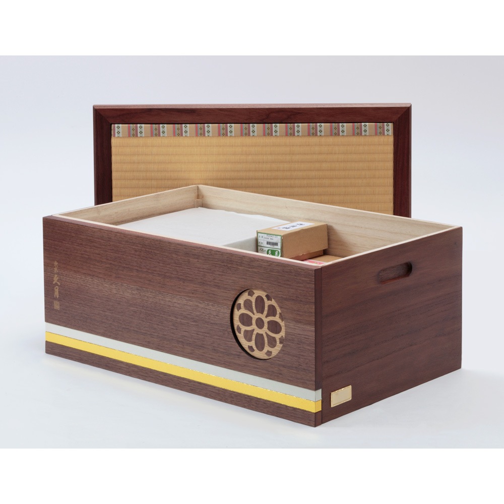 四季に咲く花の彩をモチーフに全体をコーディネートした、久月オリジナルの結シリーズの親王収納飾りです。