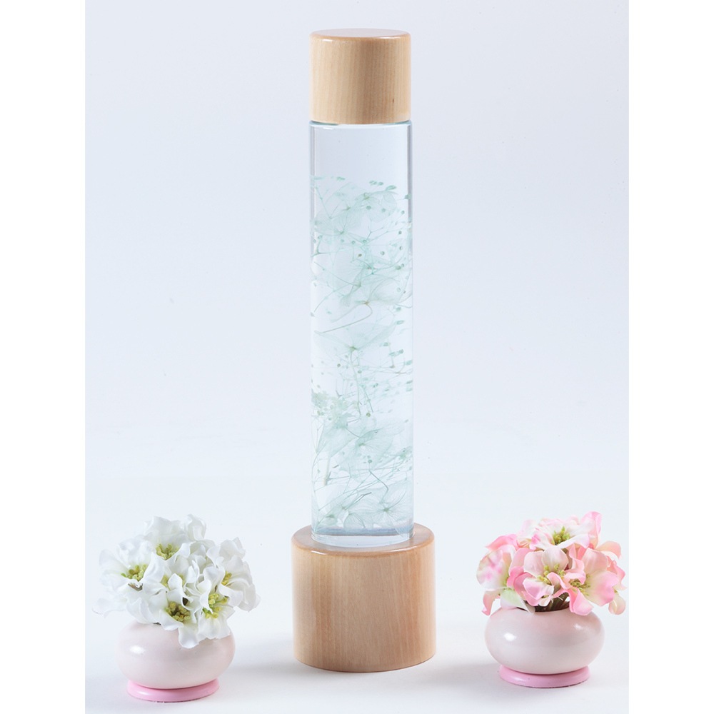 お人形の鮮やかさを引き立てる、飾り台にあしらったモダンな仕立てのハーバリウムの明かりも素敵です。