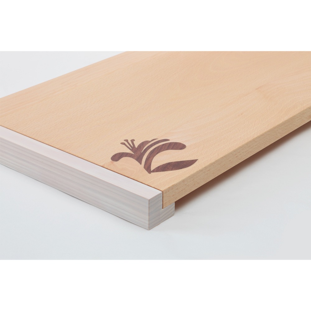 色合い鮮やかな袱紗を敷いた木目調のモダンな飾り台には、忍冬のモチーフを象嵌であしらったこだわりの仕立ても魅力です。