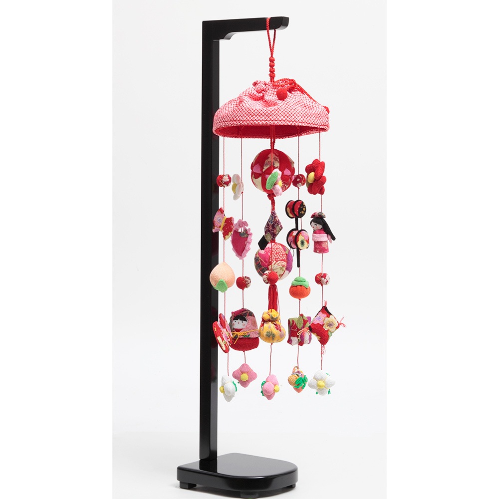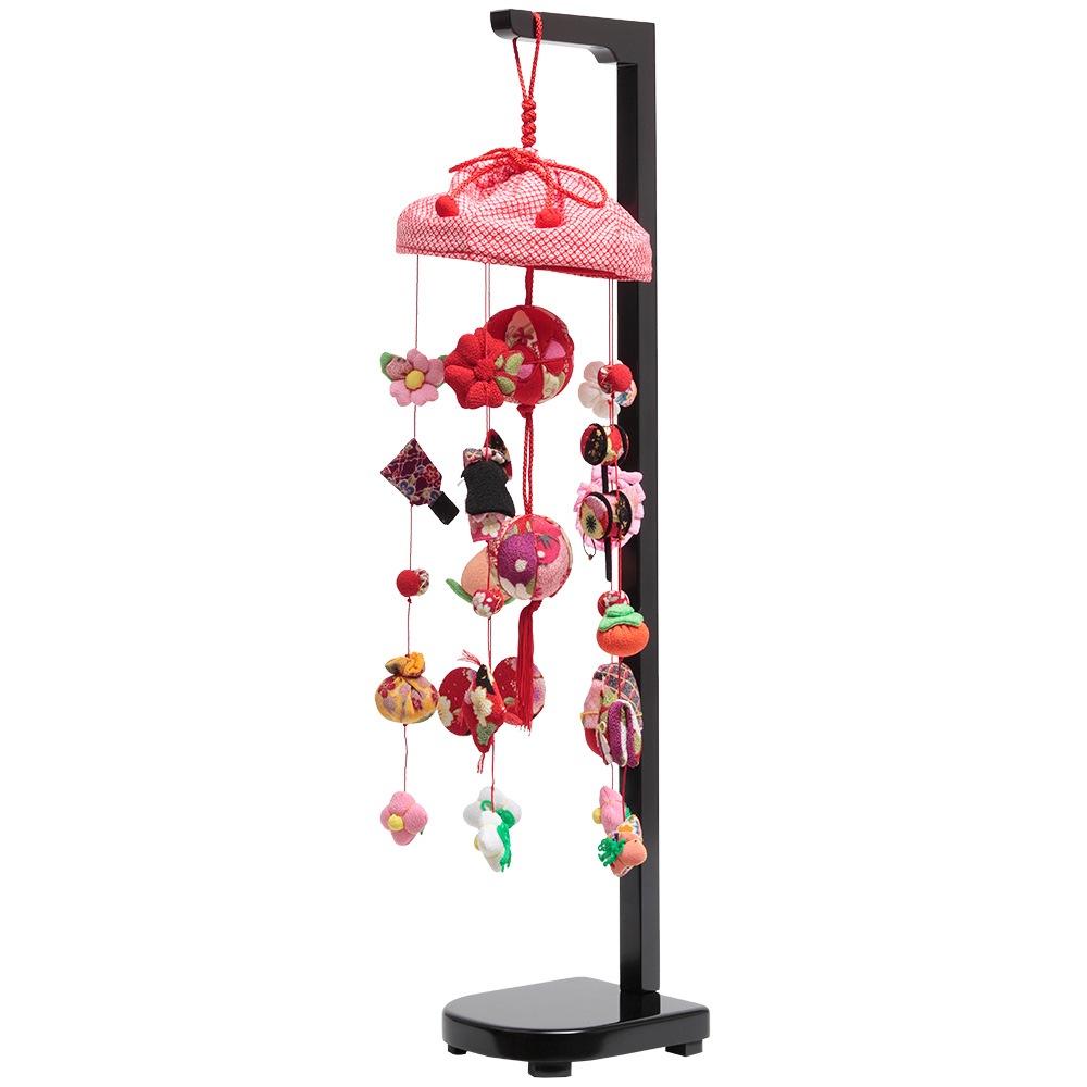 趣のある黒塗りのスタンドに、上品な色合いのつるし雛を合わせました。