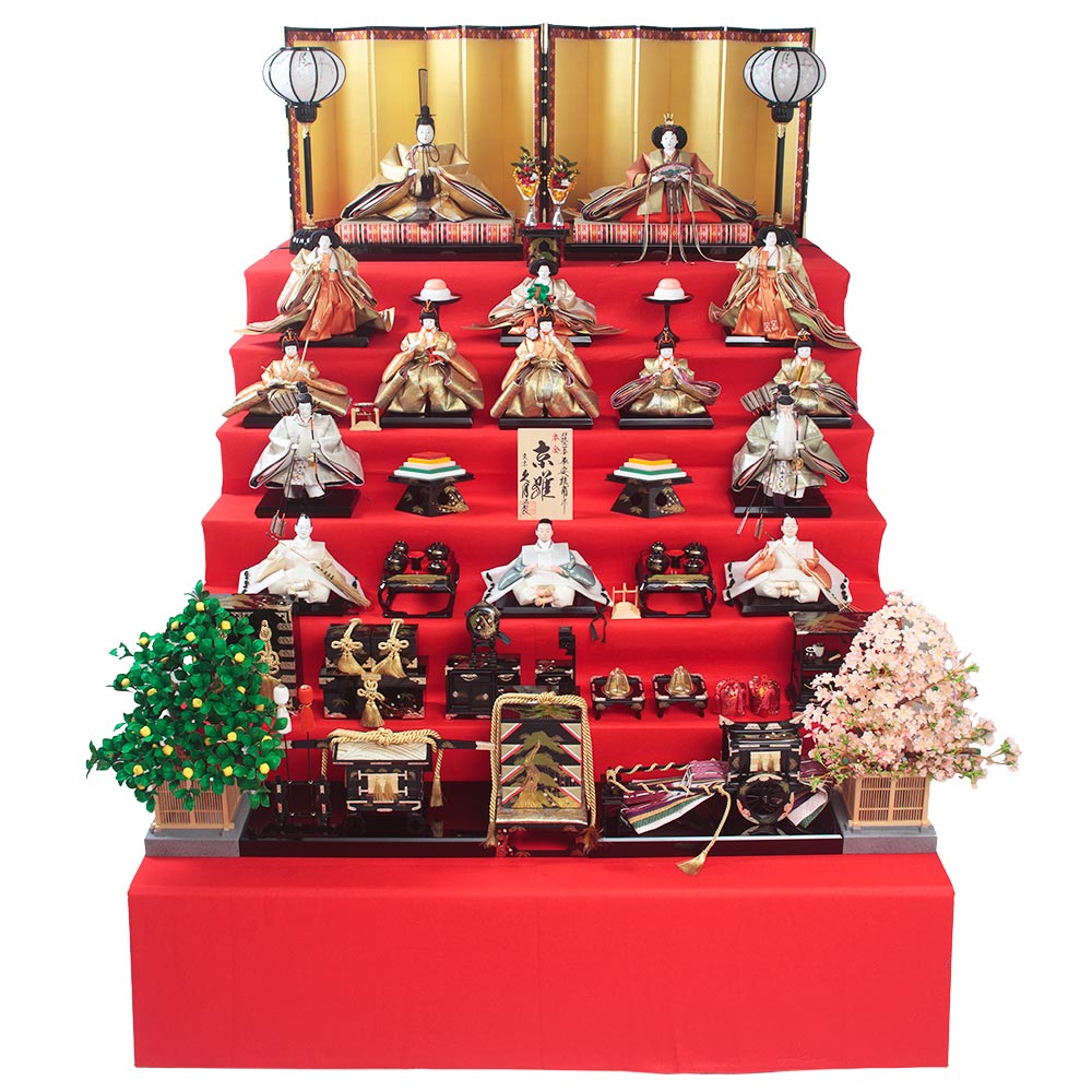 京都雛の会 平安桂甫作 毛氈七段 十五人飾り 4HR-D29京都雛の会 毛氈七段 十五人飾り