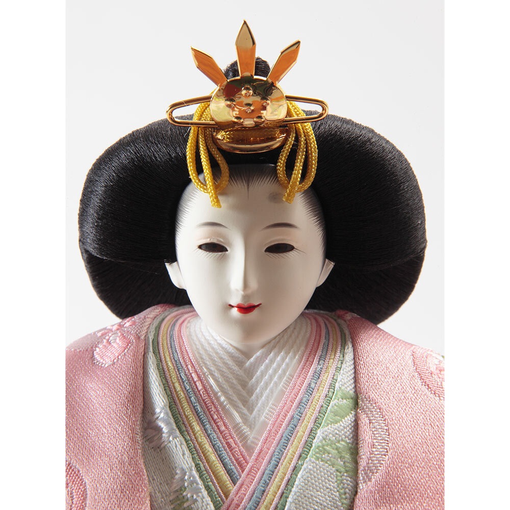 愛らしく微笑むお人形のお顔立ちも素敵な、和室はもちろん洋間にも違和感無くマッチする人気のおひなさまです。