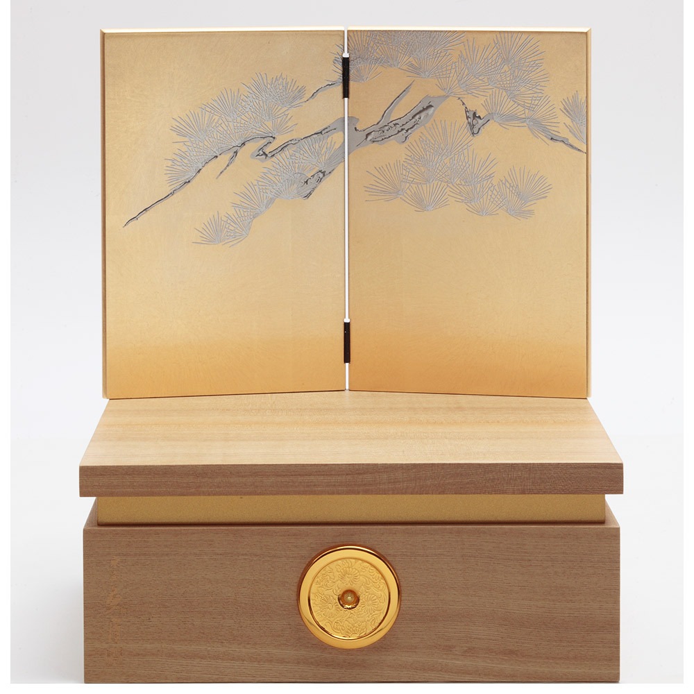 飾る場所を選ばないコンパクトなサイズ感の飾り台は、兜や弓太刀の収納ボックスを兼ねており、省スペースに仕舞える点も魅力です。