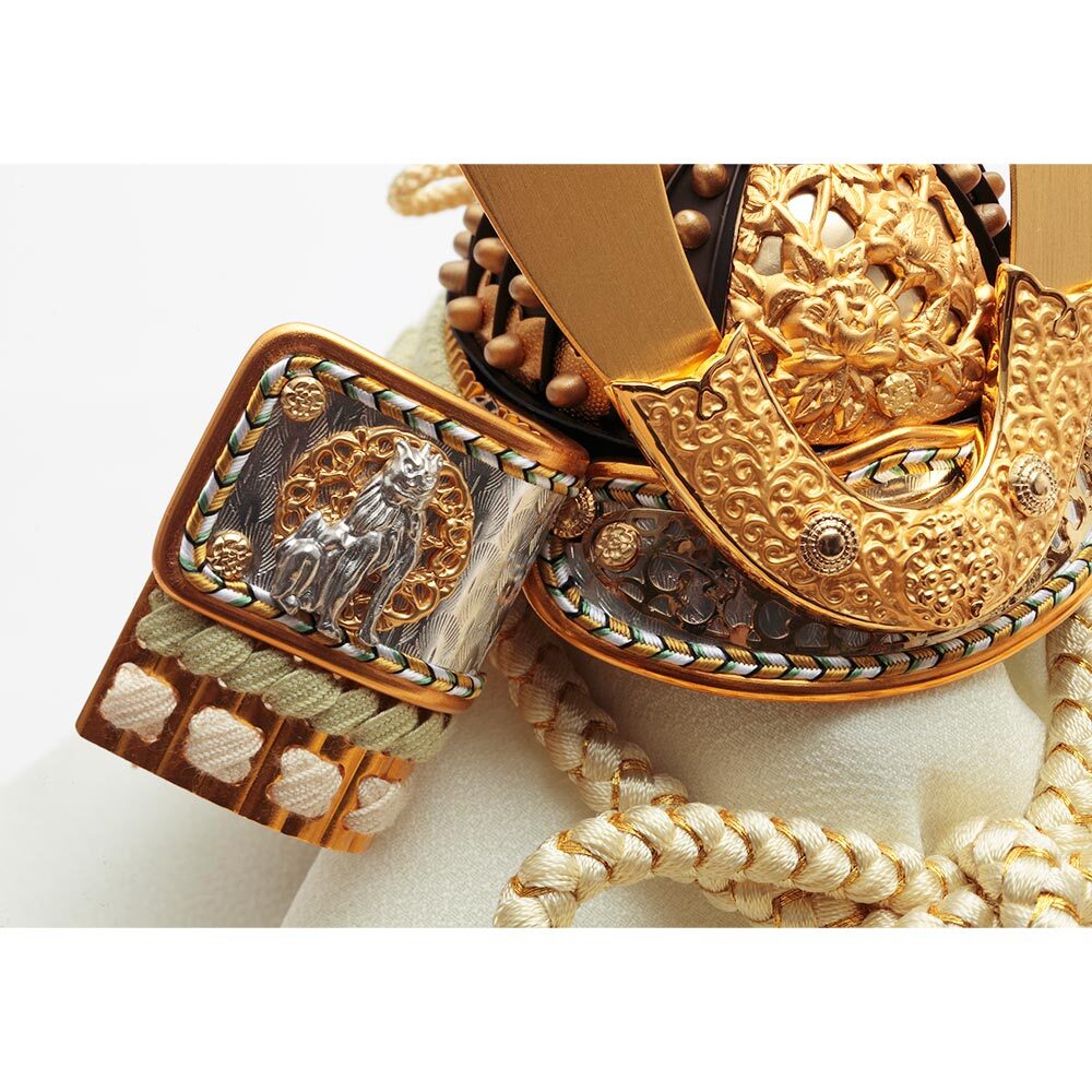 本金鍍金を施した勇壮な鍬形も印象的な兜の仕立ては、伝統工芸士・鈴木利光が細部までこだわって丁寧に手作業で行いました。