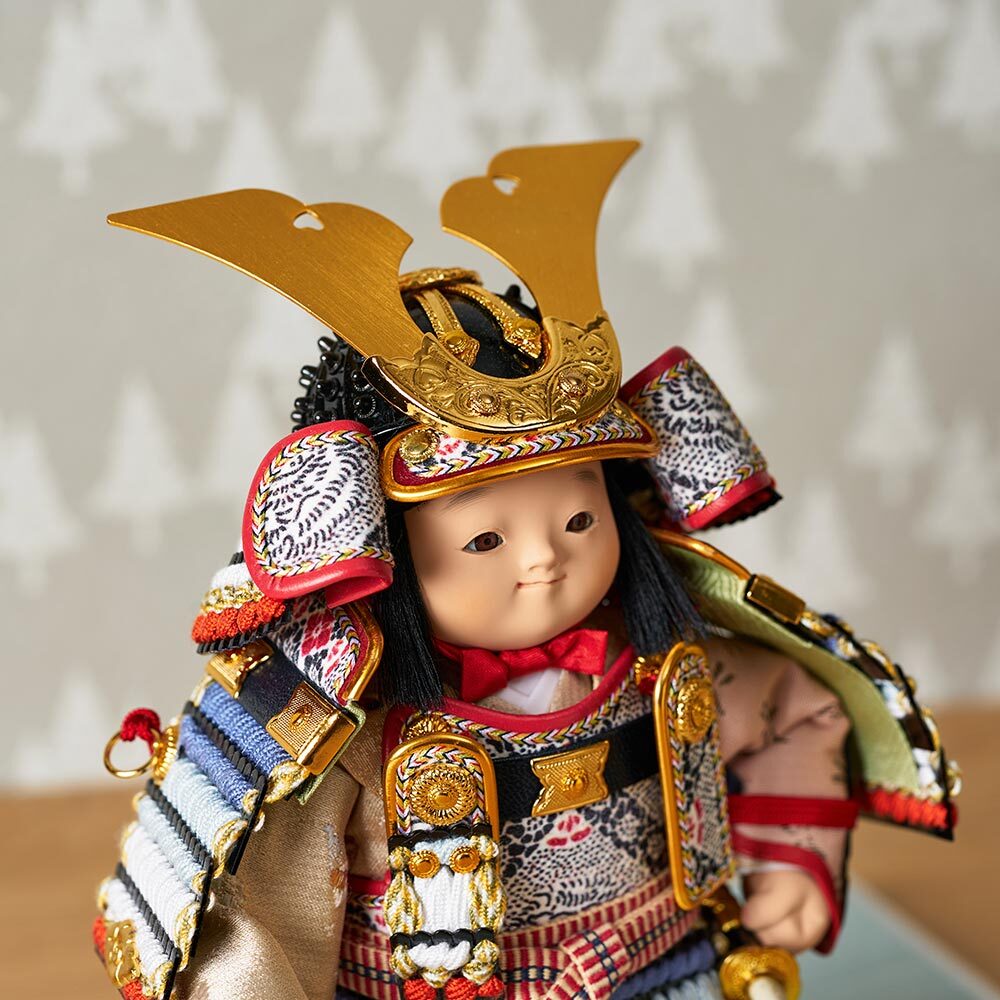 大将飾りは、鎧を凛々しくまとった愛らしい男の子のお人形です。