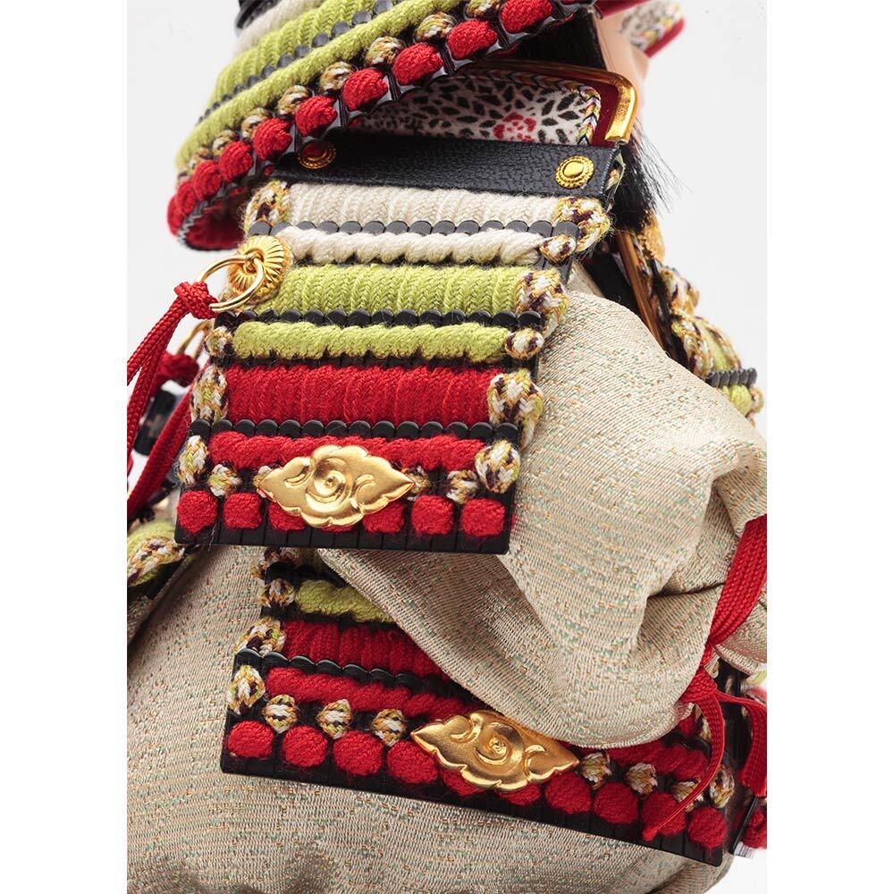 色合い鮮やかな正絹の縅糸(おどしいと)で仕上げた鎧をまとい、凛として佇む優美な立ち姿が魅力です。