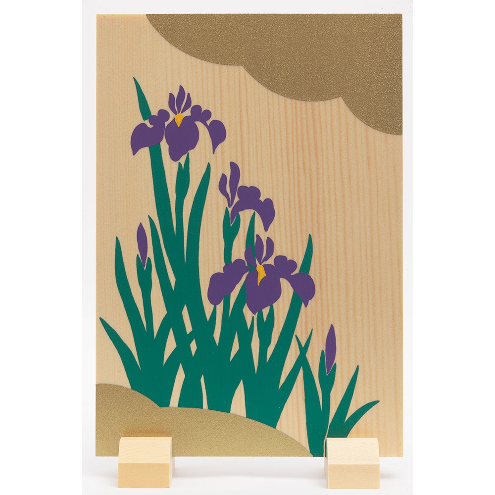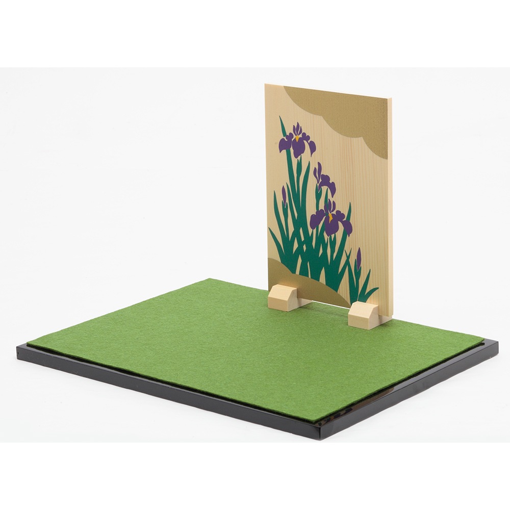 屏風にあしらわれた花菖蒲は、菖蒲(しょうぶ)が、武を重んじる尚武(しょうぶ)に転じることから、端午の節句に飾られます。