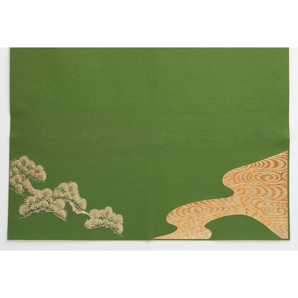 薬草の色である緑の毛氈に、美しい松と流水文様の絵柄をあしらい華やかに仕立てました。