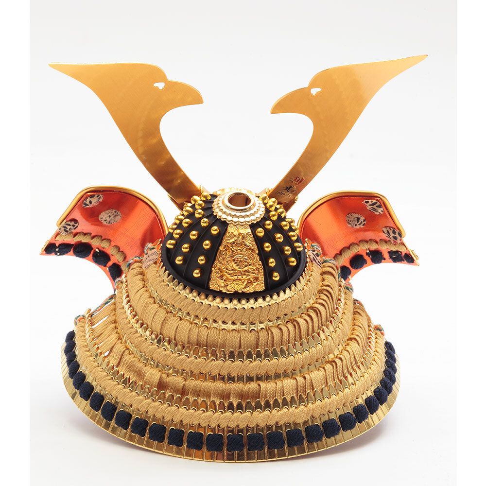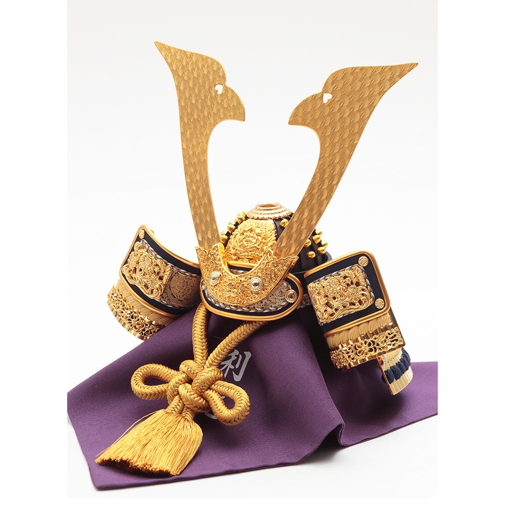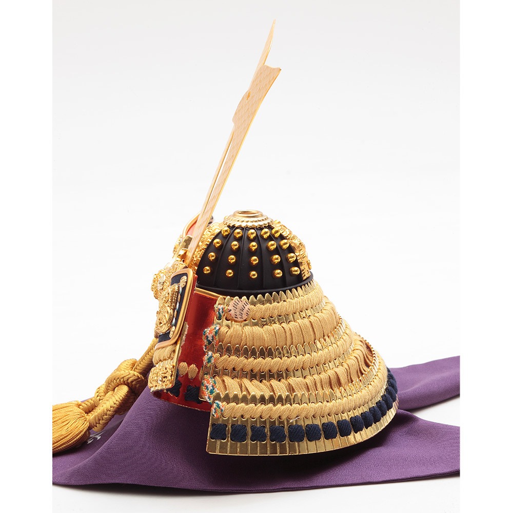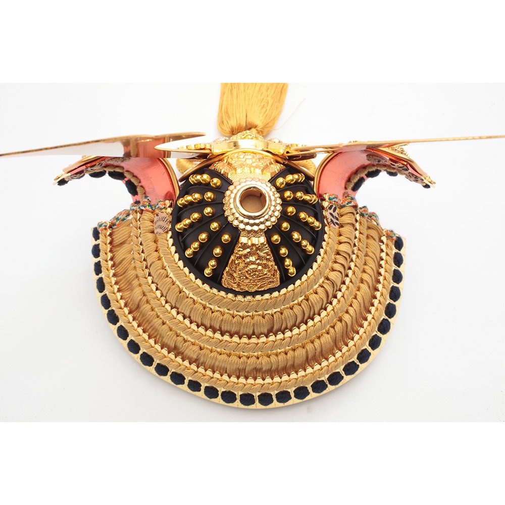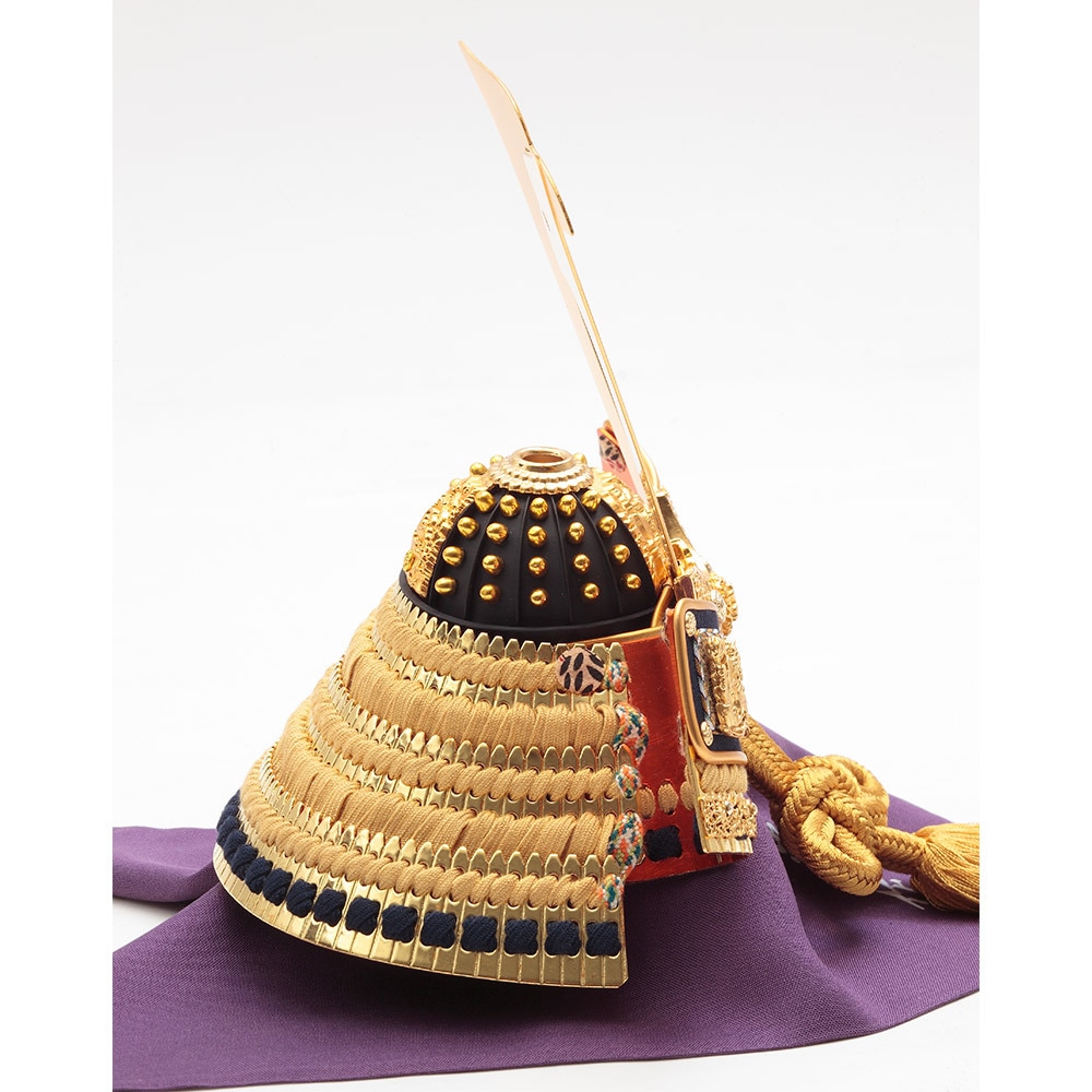 鮮やかな正絹の緋糸縅(ひいとおどし)で仕上げた兜は、本金箔押を施して完成させる豪華な小札(こざね)造りや、本金鍍金を施した勇壮な鍬形など、鈴木利光の技術の高さを感じさせる丁寧な仕立てが魅力です。