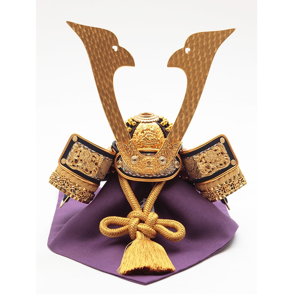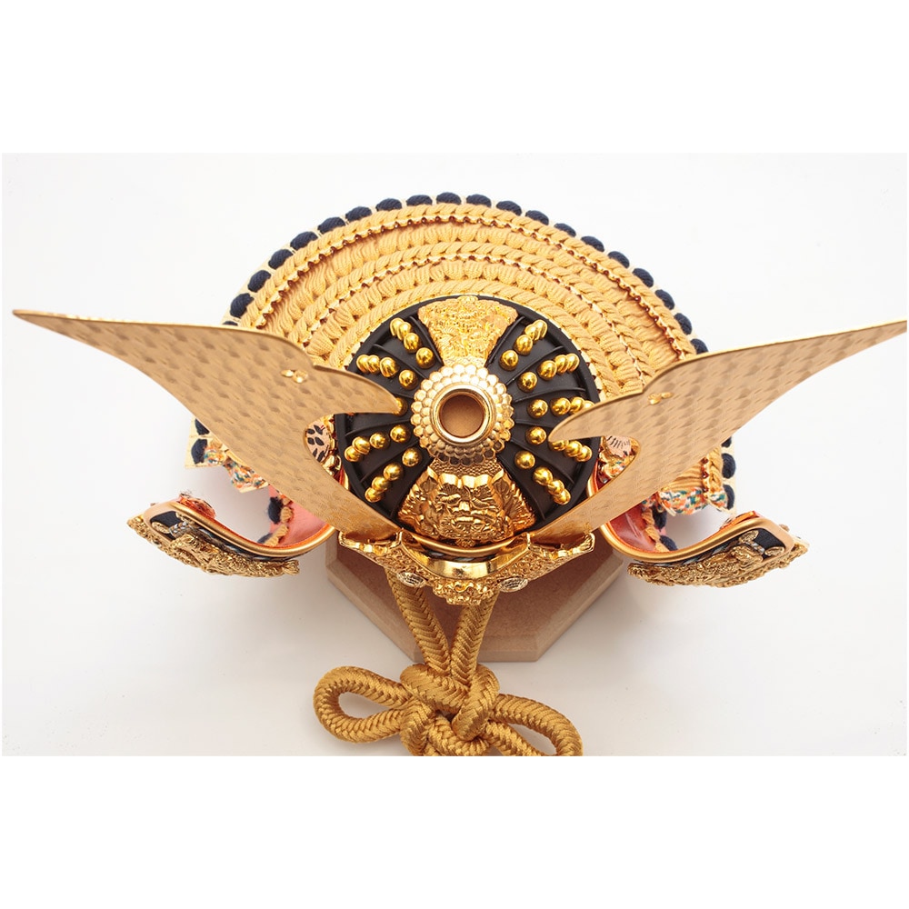 飾り台が兜の収納ボックスを兼ねており、省スペースに仕舞える点も特長の、落ち着きの中にも華やかさを感じる人気の兜収納飾りです。