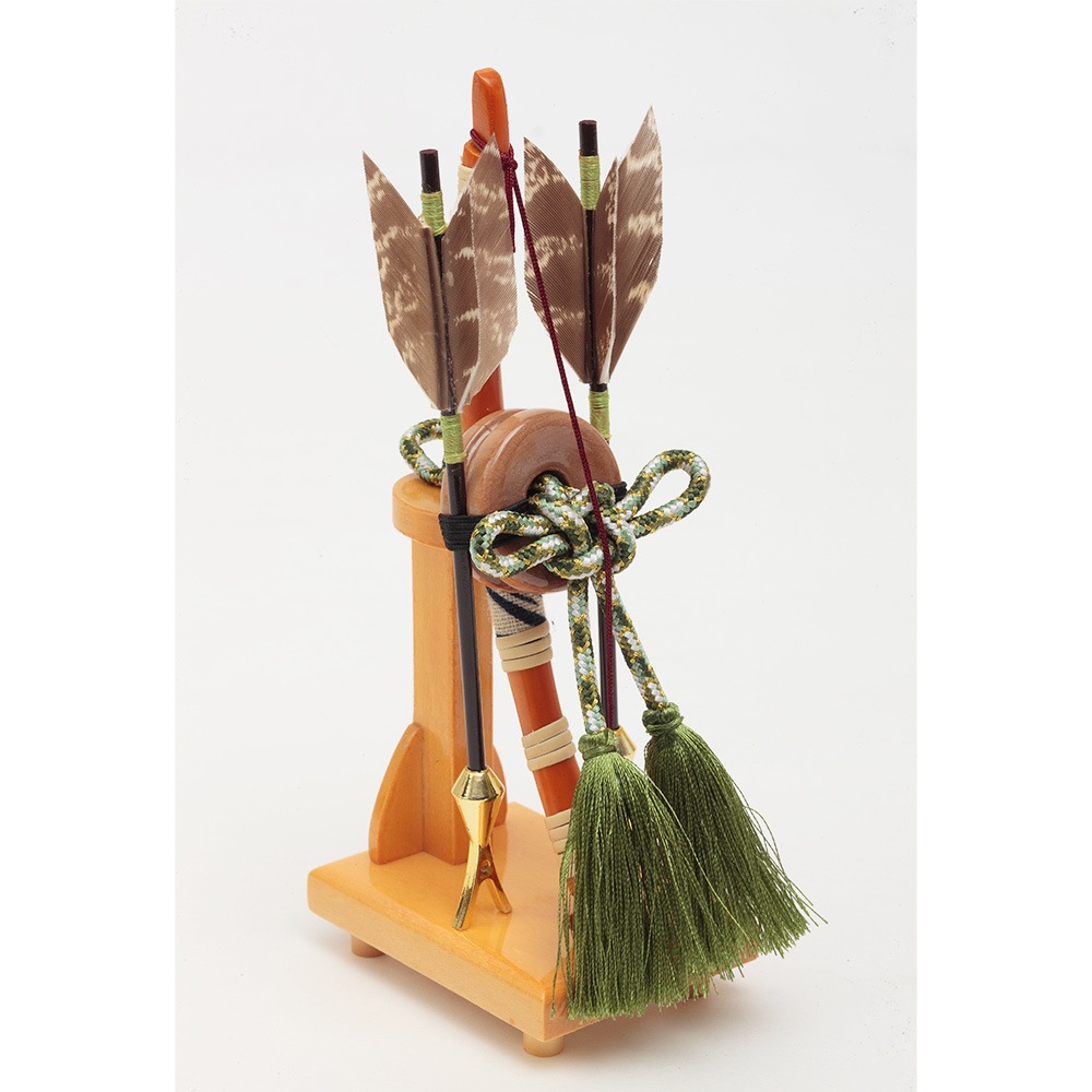 明るく華やかなデザインが素敵な飾り台は、兜や弓太刀の収納ボックスを兼ねており、省スペースに仕舞える点も特長です。