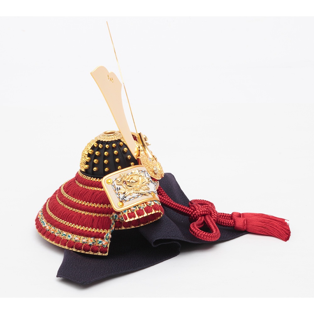 鮮やかな正絹の赤糸縅(あかいとおどし)で仕上げた兜は、本金箔押を施して完成させる豪華な小札(こざね)造りや、本金鍍金を施した勇壮な大鍬形など、鈴木利光の技術の高さを感じさせる丁寧な仕立てが魅力です。